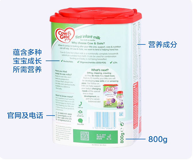 4、更加科学合理的营养配方比例,英国牛栏奶粉Cow&gate奶粉更加合理,科学的蛋白质,脂肪等营养成分配方比例,适合宝宝消化功能特点,减轻宝宝消化负担。