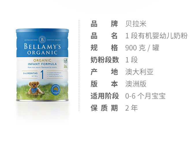 澳洲市场上所有婴儿奶粉统一分段,都只分3个阶段,贝拉米奶粉只划分3个阶段,没有欧洲奶粉分段那么详细,但是营养也非常充足。