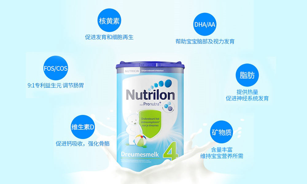4.荷兰牛栏奶粉最佳健康脂肪酸含量特别配方比普通奶粉蛋白质和盐份含量少;
