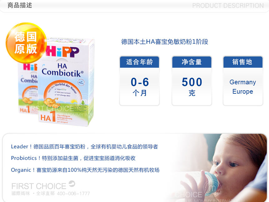 海外本土德国喜宝HA免敏奶粉1段(0~6个月)