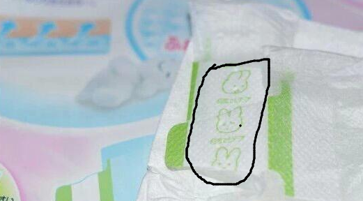 日版花王纸尿裤的腰封上面是有一些图片的,小兔子和字母组成,一般而言上面的图片和文字是可以完全重合,组成一个完成的图,但是这种技术并不是花王纸尿裤的专利技术,仿品也是能做出来的,只是麻烦点。