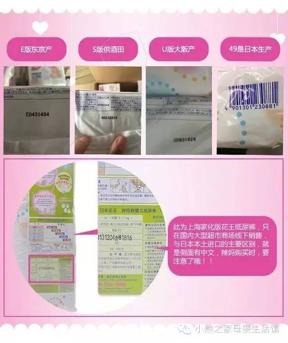 日版花王纸尿裤目前有3个版本,u版、e版和s版,代表了花王纸尿裤在日本的三个生产工厂,生产材料、生产设备、生产技术、监管标准都是完全一样的,一些代购为了宣传自己的花王纸尿裤,大肆宣传“u版和e版花王纸尿裤比较好,s版花王纸尿裤质量比较差的言论”,这种言论也是不实的,三个版本的花王纸尿裤在日本本地超市都有出售,日本妈妈也不会关注这些问题,对于日本妈妈而言,东西都是一样的。就像我们去超市买特仑苏牛奶一样,没人会关注是哪个工厂哪个流水线生产的。