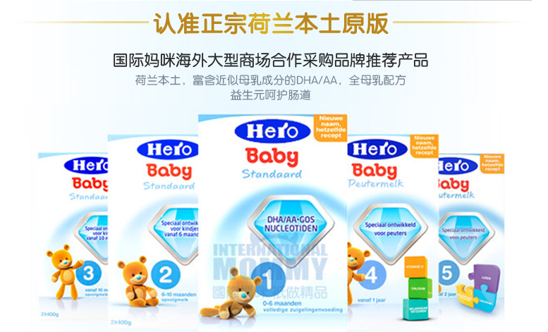 荷兰市场上的美素奶粉英文名是hero baby,隶属于瑞士hero集团,有着130年以上的品牌历史,是荷兰主流奶粉品牌,在荷兰市场占有率非常高,荷兰小宝贝吃的美素奶粉版本。也是妈妈们在【国际妈咪】app上选购的荷兰美素奶粉版本。
