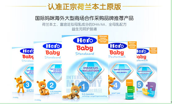 Hero baby是荷兰本地第二大奶粉品牌,有着130年以上品牌历史,国内妈妈习惯称之为荷兰美素,因优质的荷兰奶源、高性价比荷兰美素hero baby深受国内海淘妈妈的欢迎。2016年海淘年销量位居【国际妈咪】app全球婴儿奶粉品类前3名,而且在国际妈咪海淘妈妈圈中口碑评价也非常好。