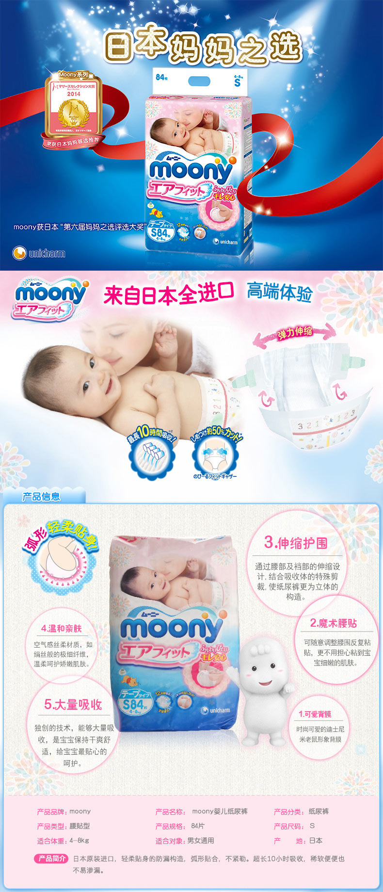 尤妮佳纸尿裤在日本享有“纸尿裤之王”的美誉,日本尤妮佳株式会社成立于1961年,是最受日本妈妈推崇的纸尿裤品牌,尤妮佳纸尿裤在日本本地市场上销量最高。