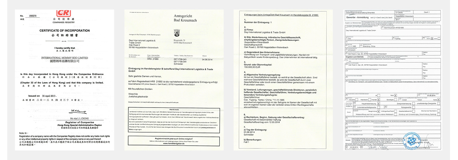 国际妈咪欧洲公司位于德国,德国DEYI INTERNATIONAL LOGISTICS & TRADE GMBH 位于法兰克福机场旁,德国精神表达的为更持久,德国产品考虑的都是百年,人员一生重复一件事,不断的打磨产生的严谨、认真影响了世界。德国公司团队更注重精神的培育,仓储位于法兰克福,并支持用户自提。