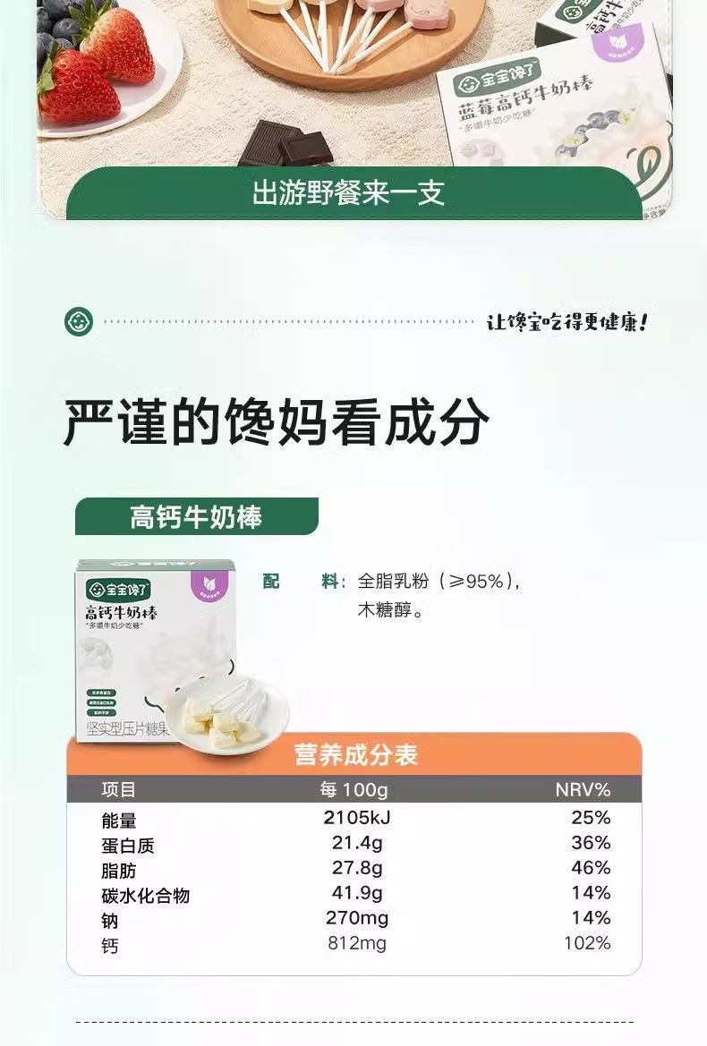 Baobaochanle 宝宝馋了高钙牛奶棒40g