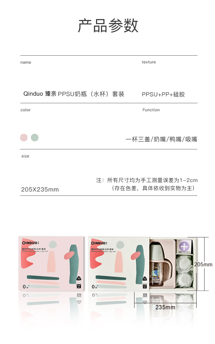 QINDUO 亲多宝宝臻亲PPSU奶瓶水杯礼盒套装 240ml 绿色
