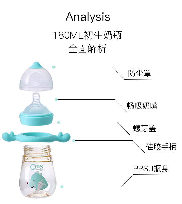 QINDUO 亲多星梦宝宝初生奶瓶 180ml 粉色