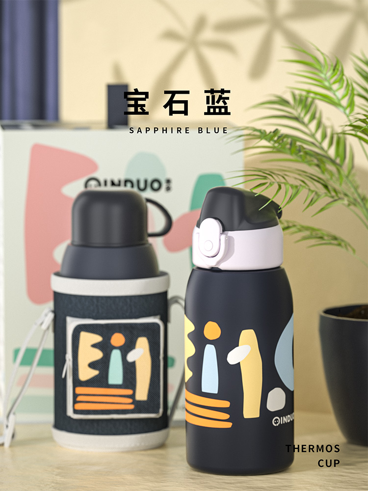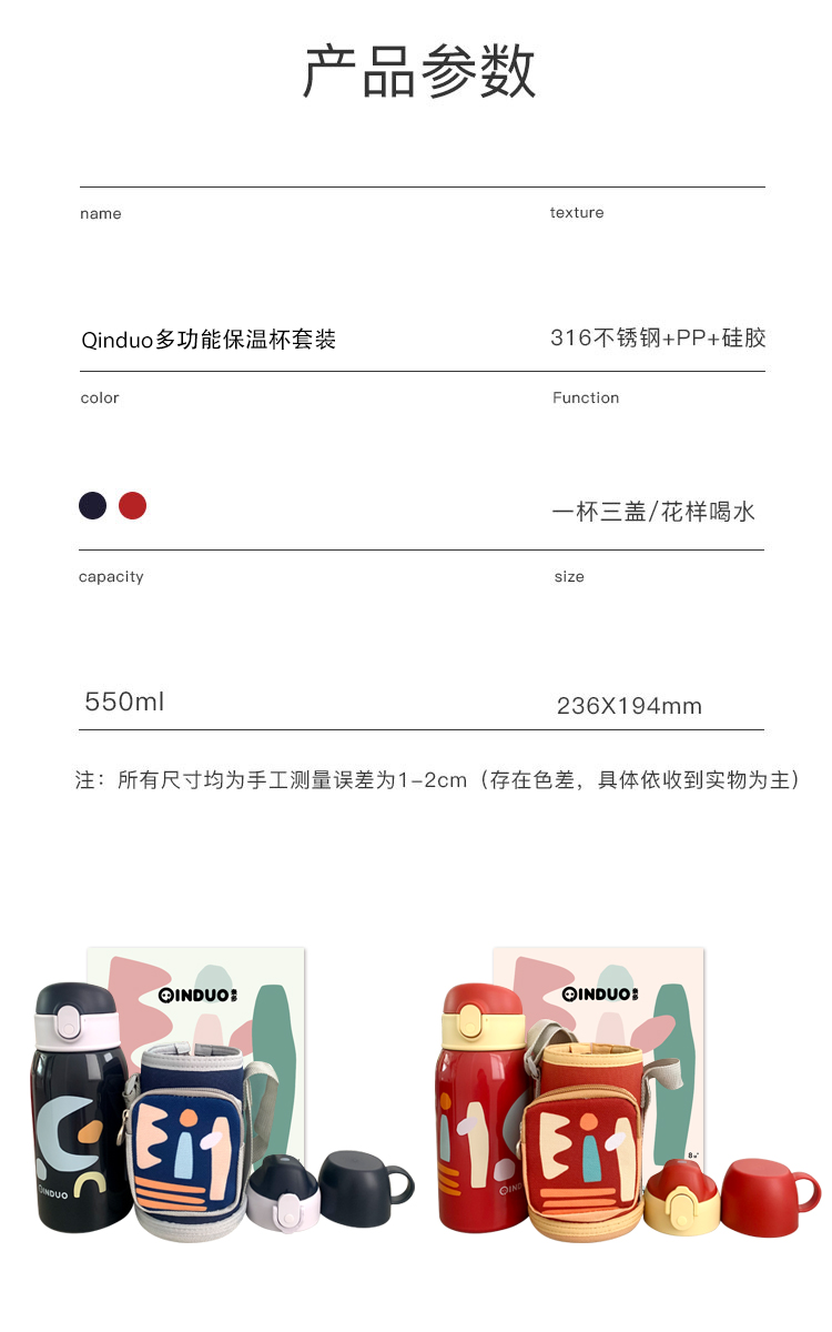 QINDUO 亲多儿童多功能保温杯 蓝色
