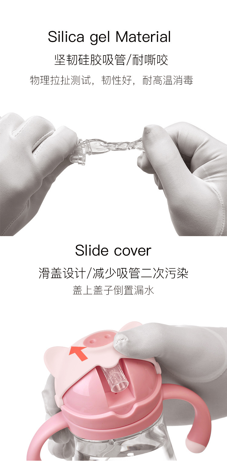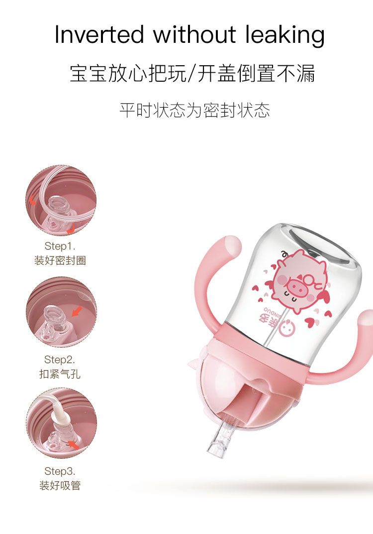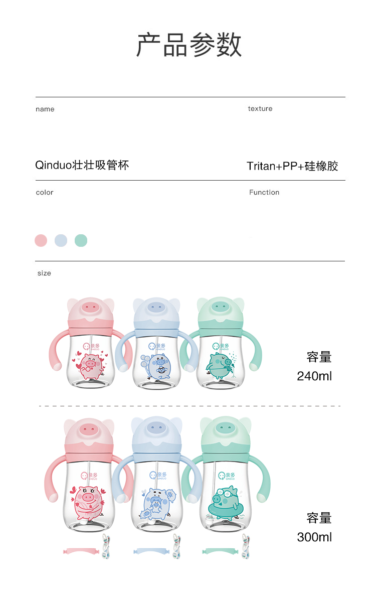 QINDUO 亲多儿童壮壮吸管杯 粉色