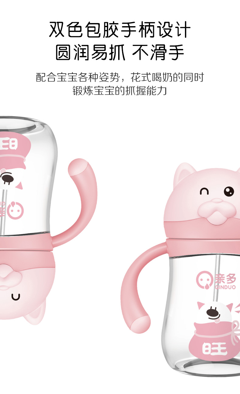 QINDUO 亲多儿童汪先生吸管杯 粉色