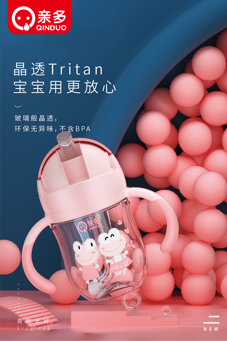 QINDUO 亲多儿童青蛙水杯 粉色