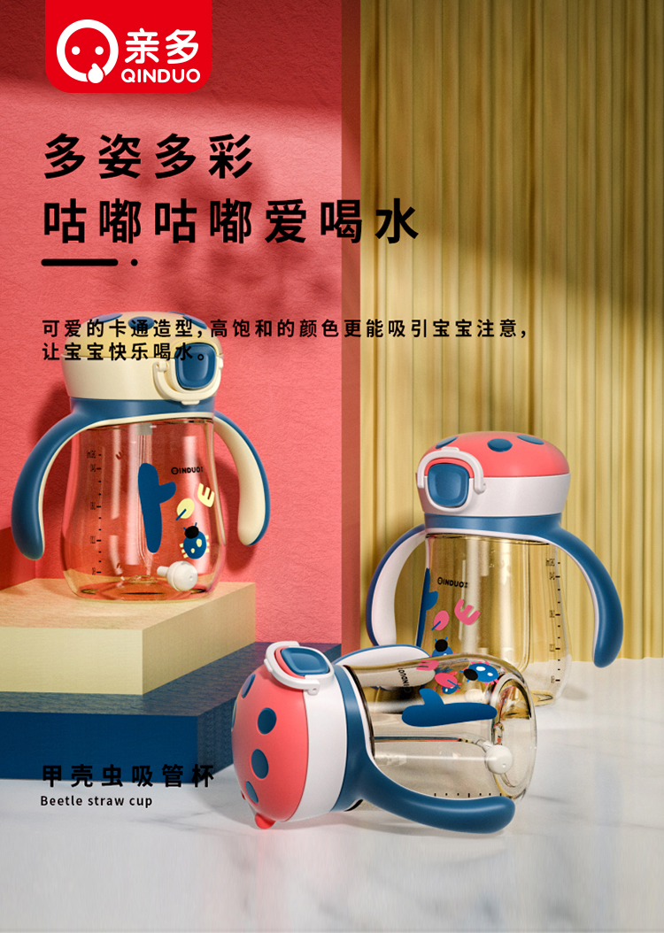 QINDUO 亲多甲壳虫吸管杯 黄色