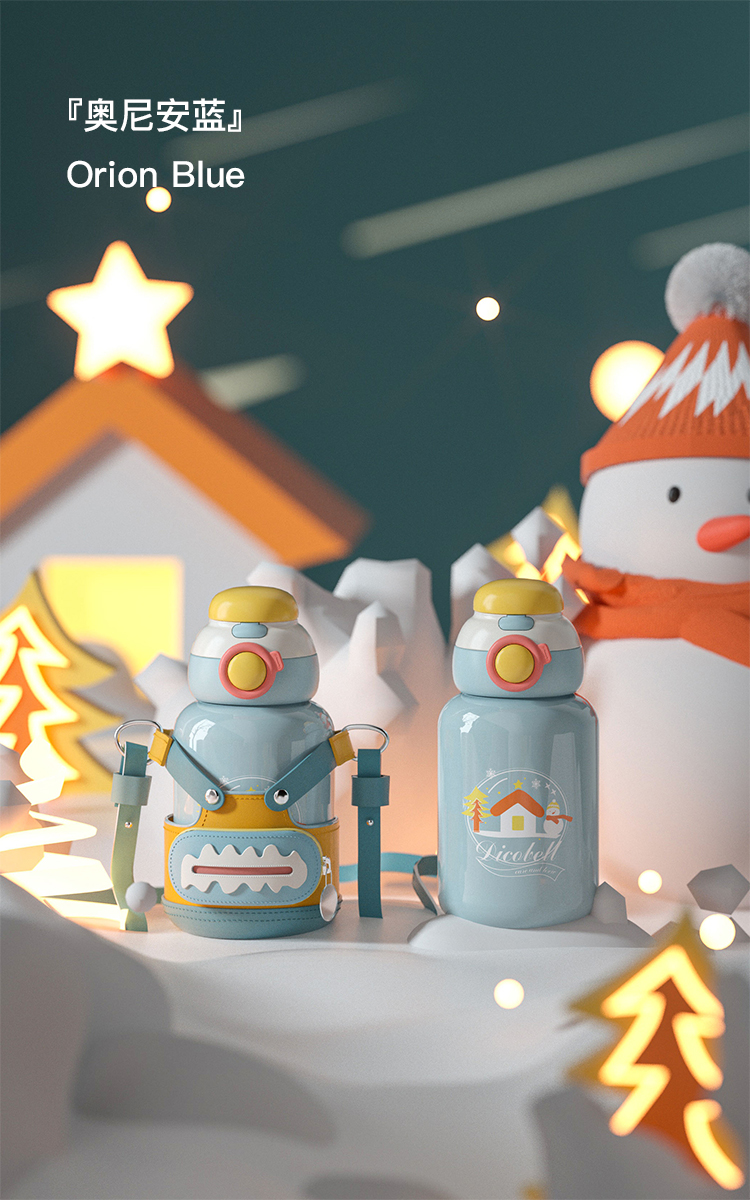 QINDUO 亲多欧仔双饮316不锈钢背带保温杯 科洛粉