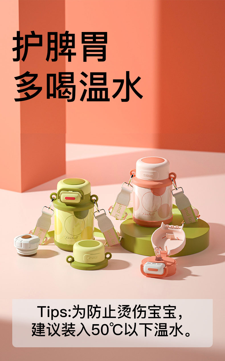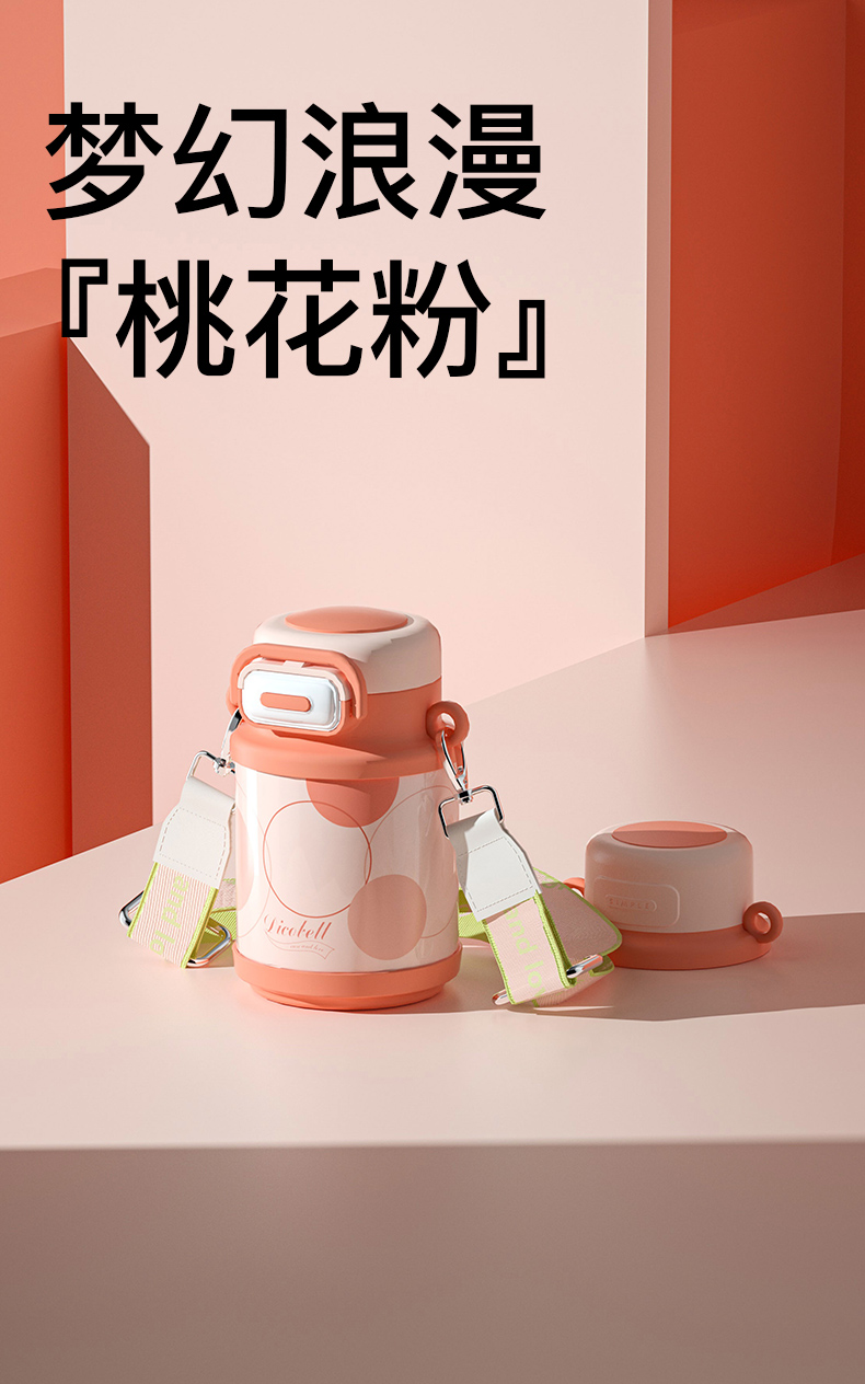 QINDUO 亲多小魔罐背带保温杯 580ml 桃花粉