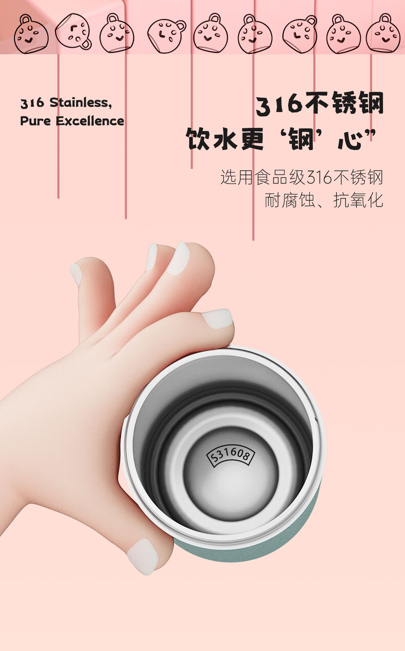 QINDUO 亲多316材质不锈钢帽子保温杯粉末黑 620ml