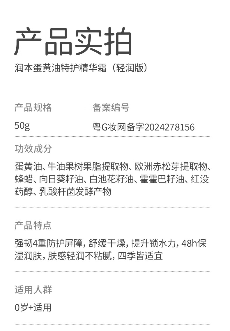 RUNBEN 润本蛋黄油特护精华霜 轻润版 50g