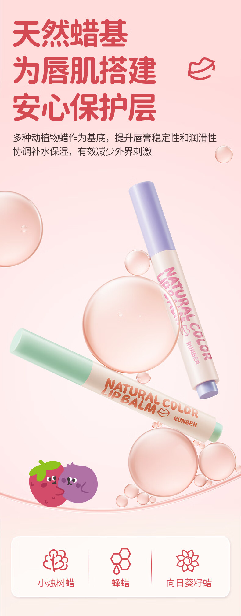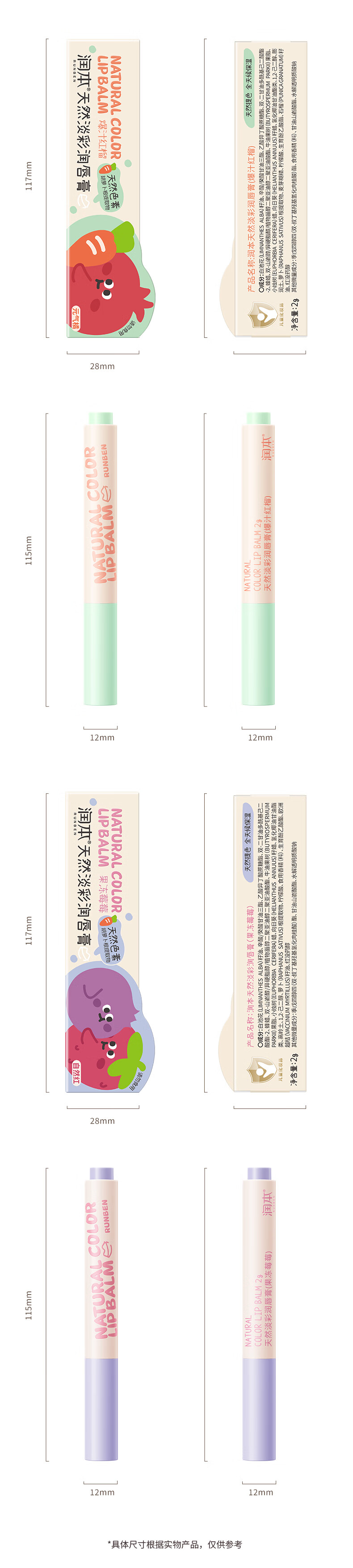 RUNBEN 润本天然淡彩润唇膏 爆汁红榴 2g