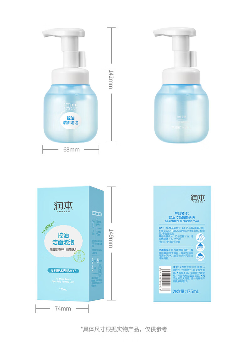 RUNBEN 润本儿童控油洁面泡泡 175ml