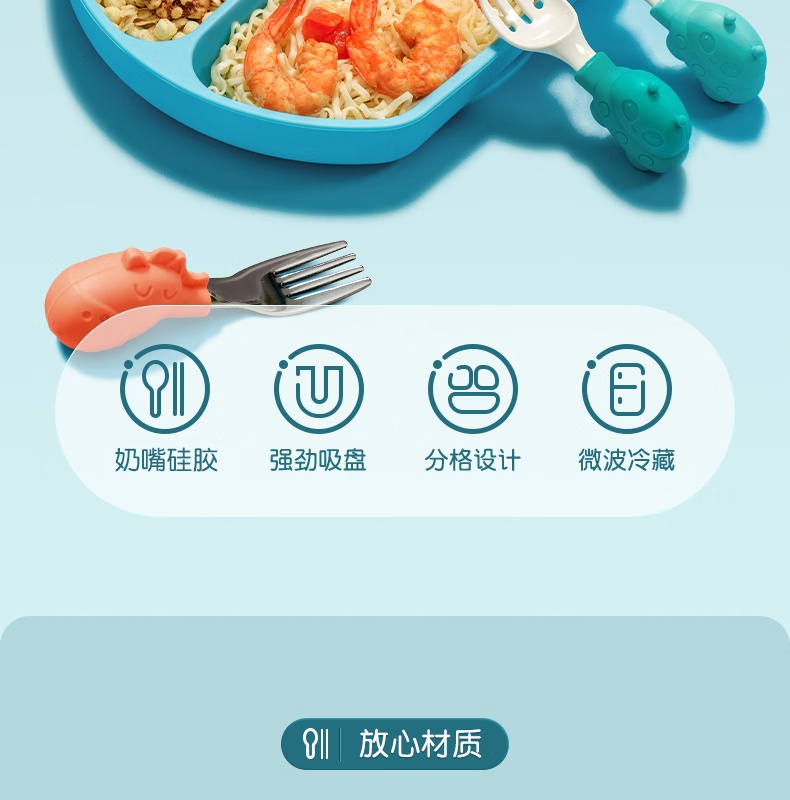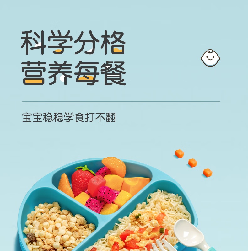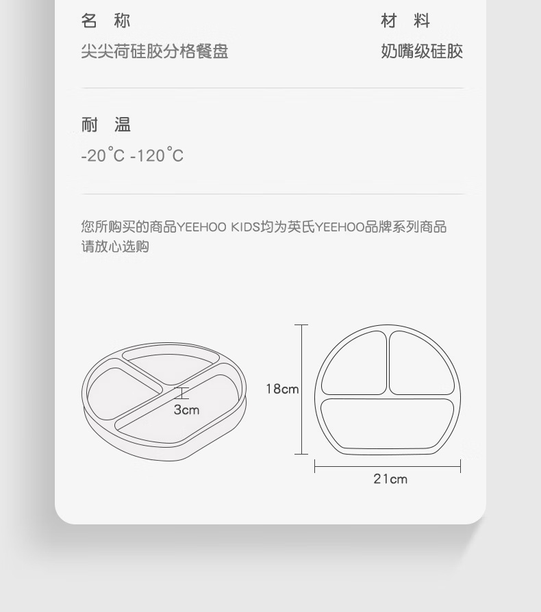 YEEHOO 英氏宝宝尖尖荷硅胶分格餐盘