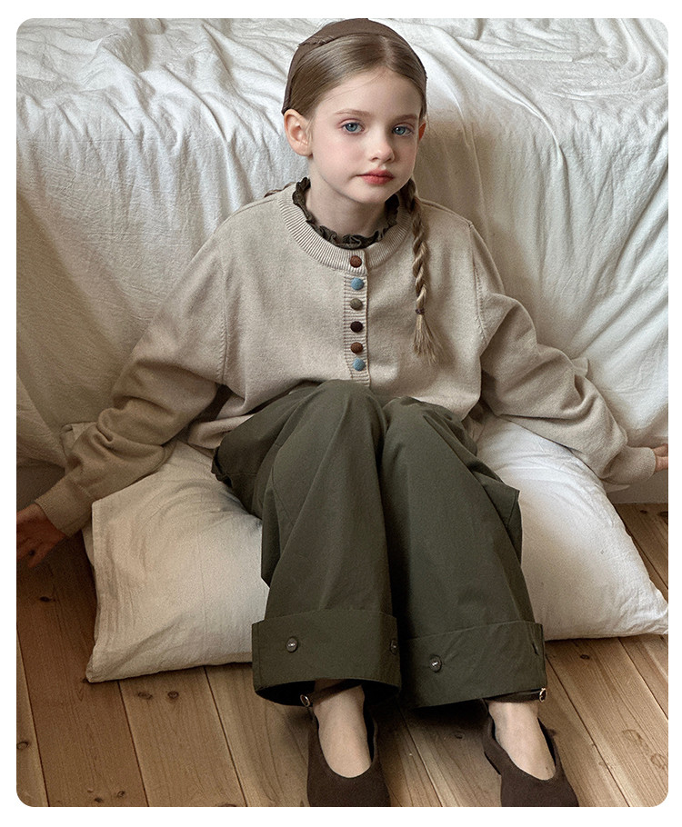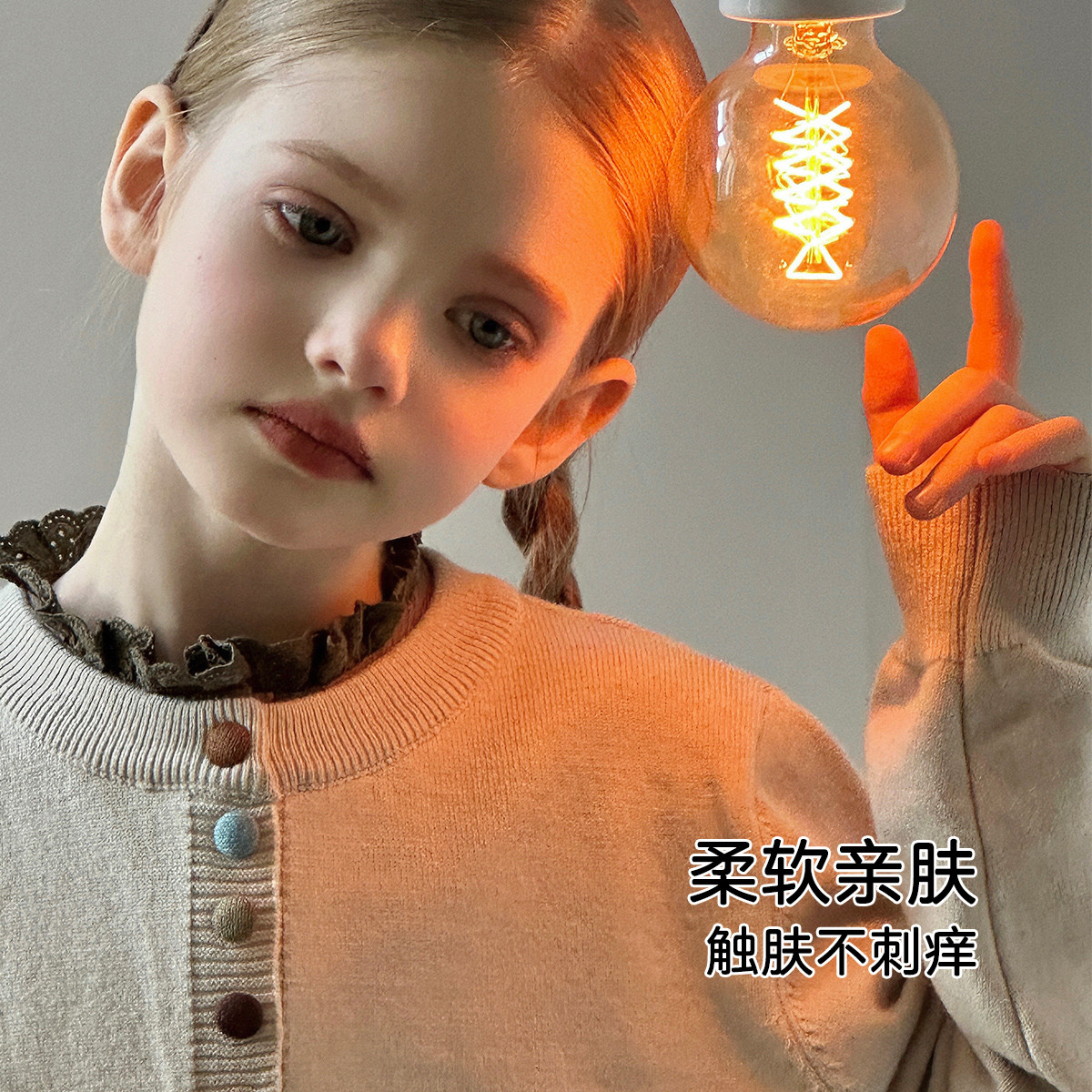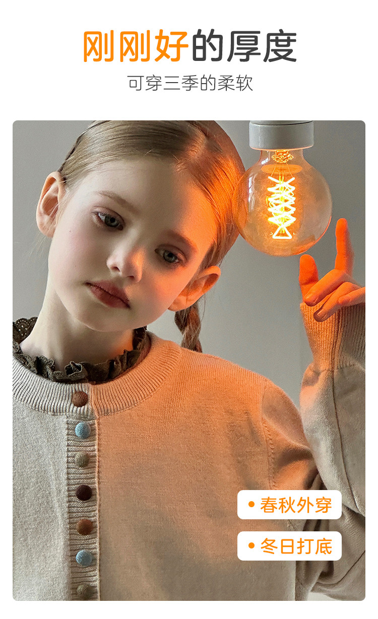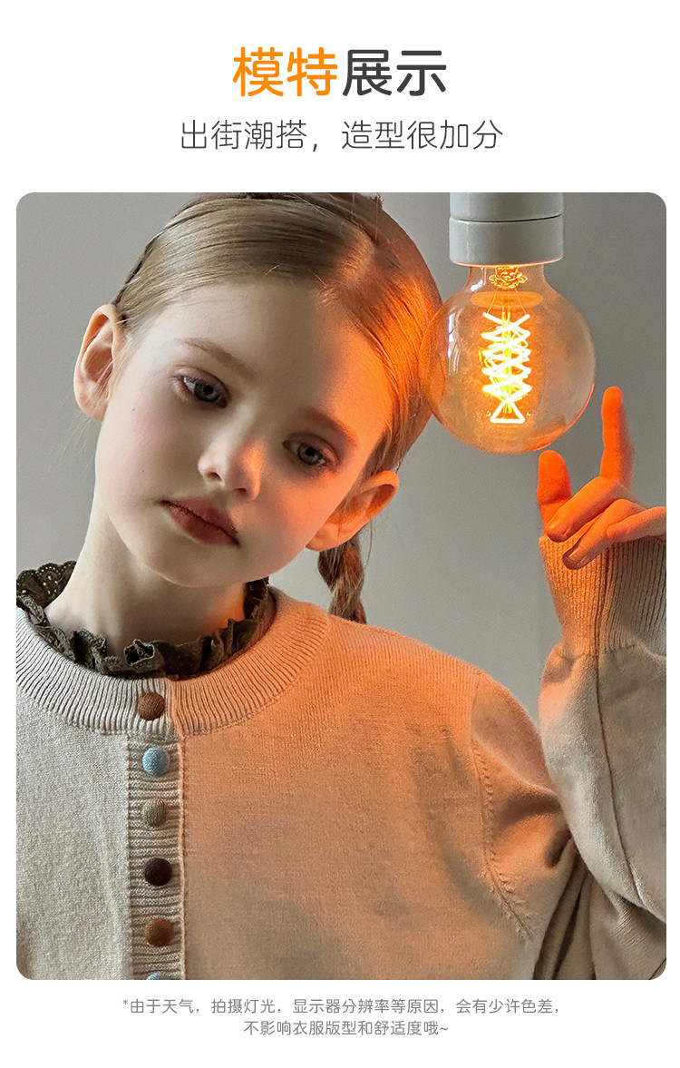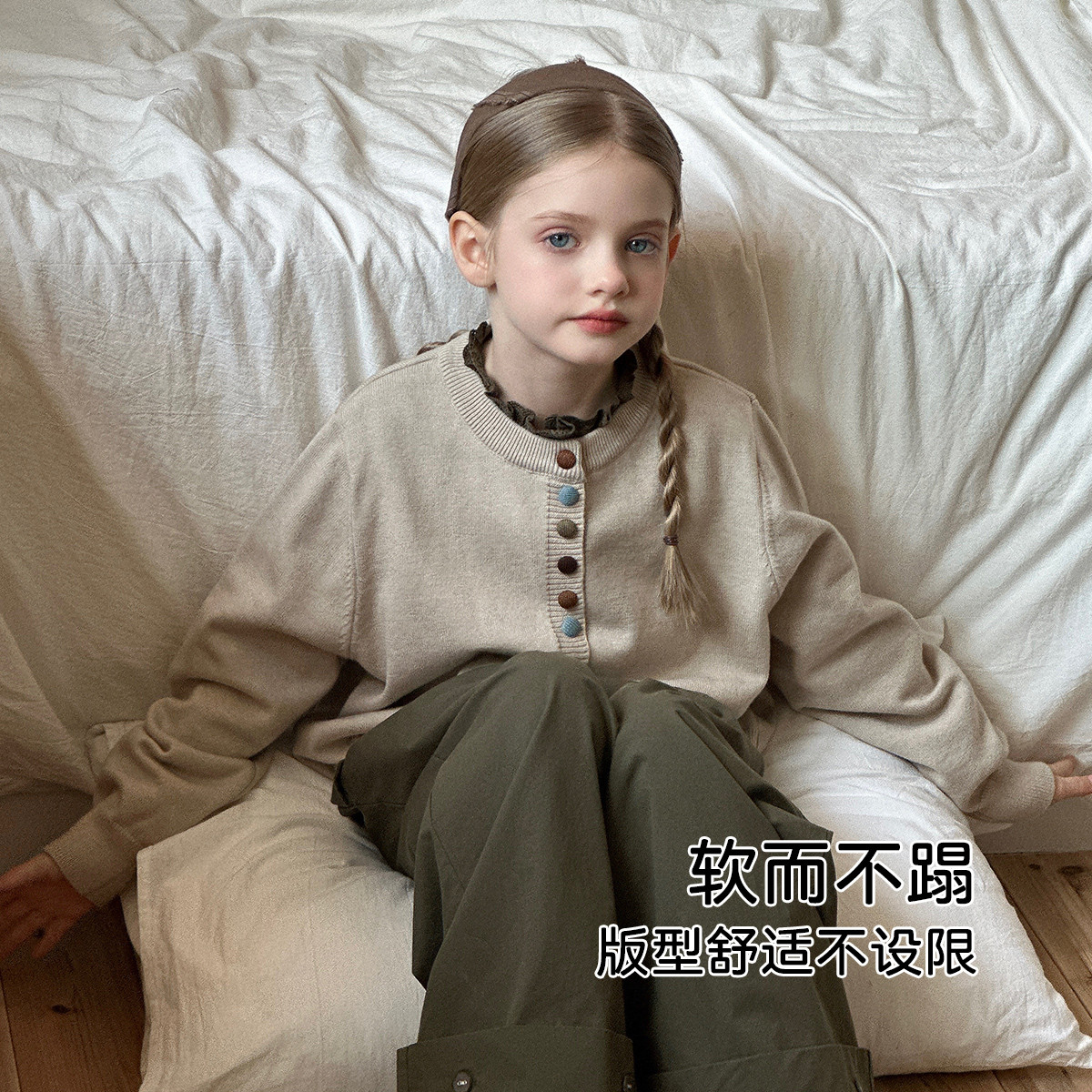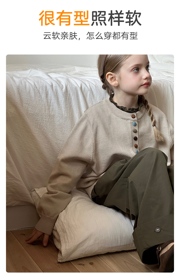 SHINING ELEPHANT 绚象儿童米色木耳领针织衫