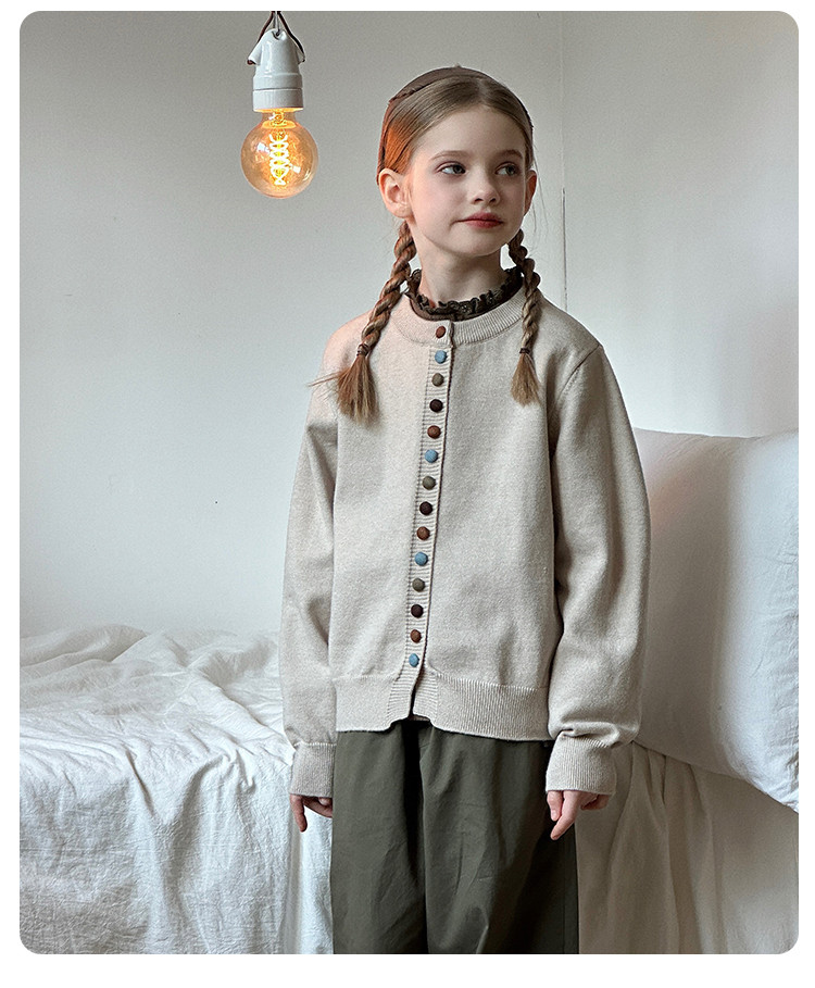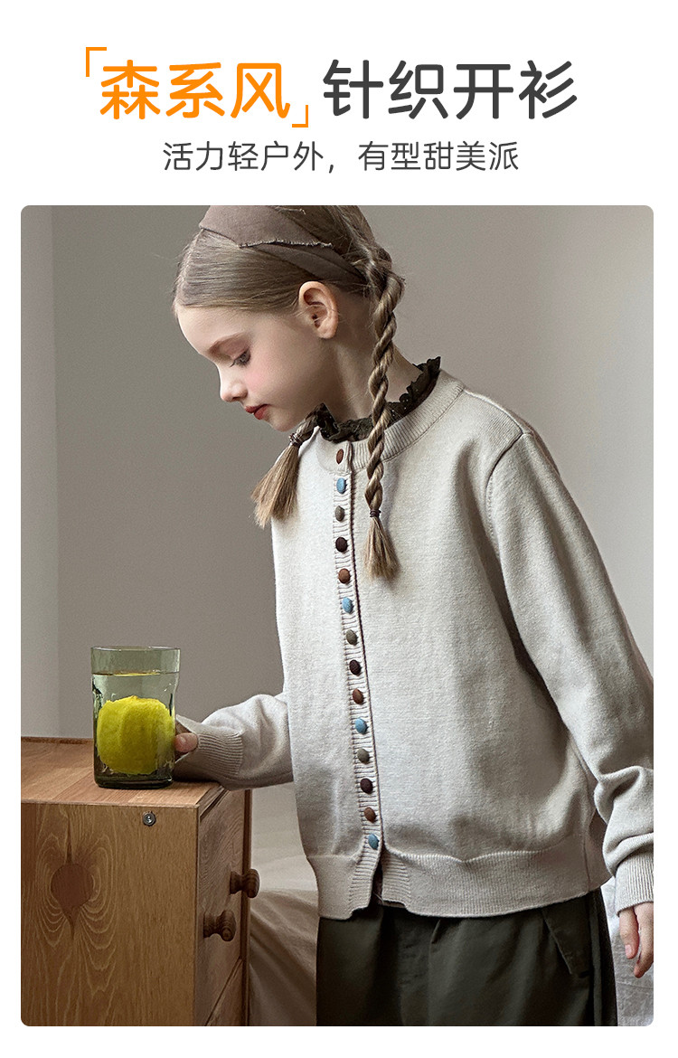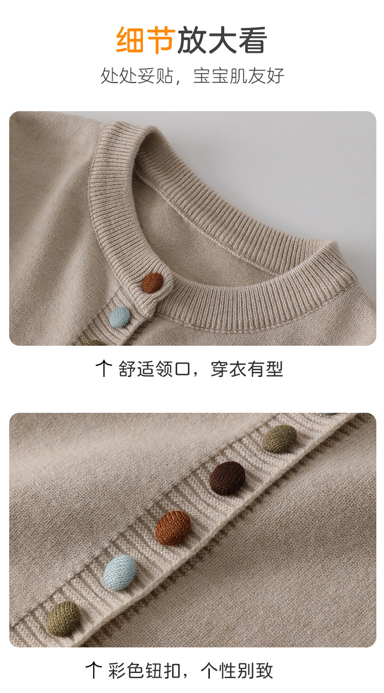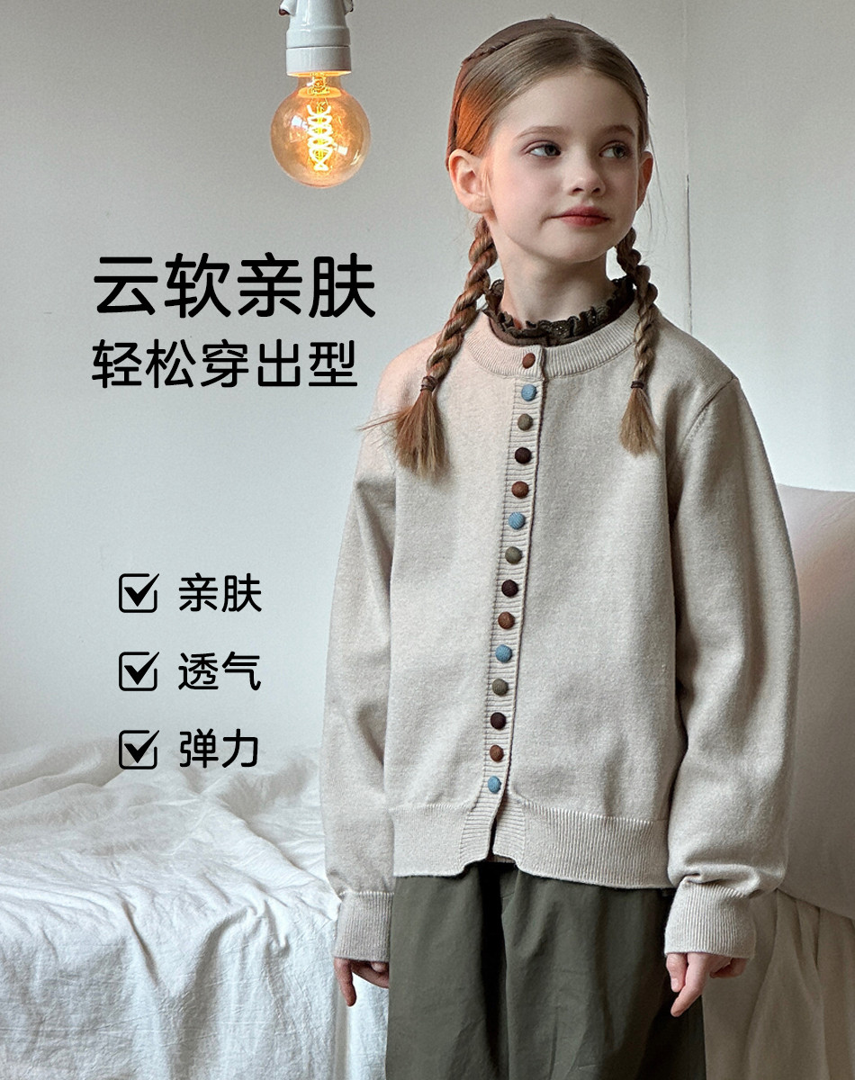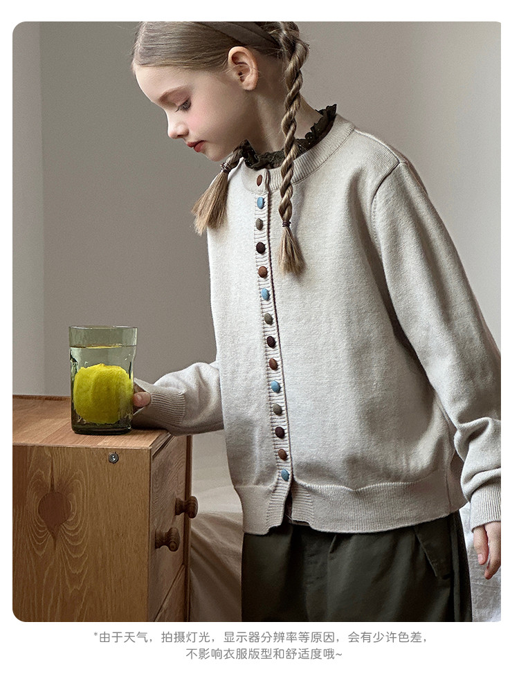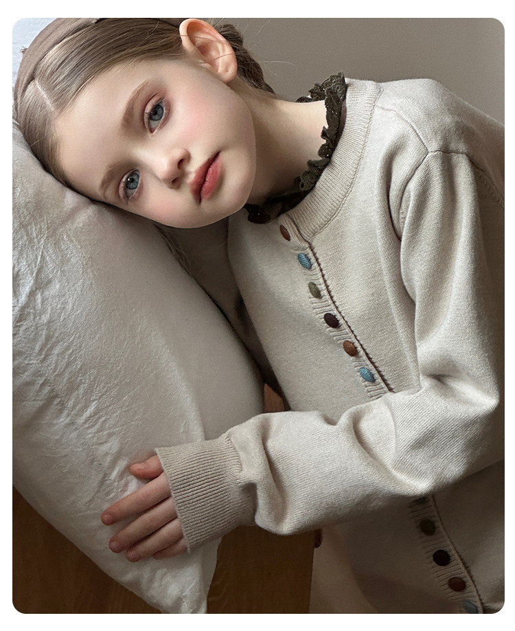 SHINING ELEPHANT 绚象儿童米色木耳领针织衫