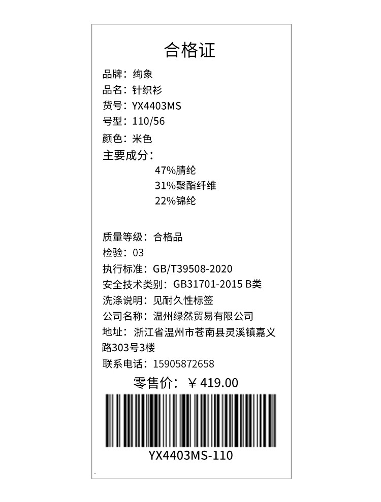 材质成分: 47%腈纶 31%聚酯纤维 22%锦纶