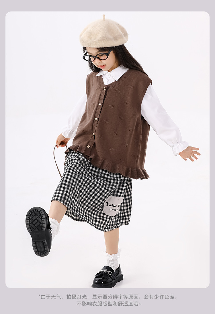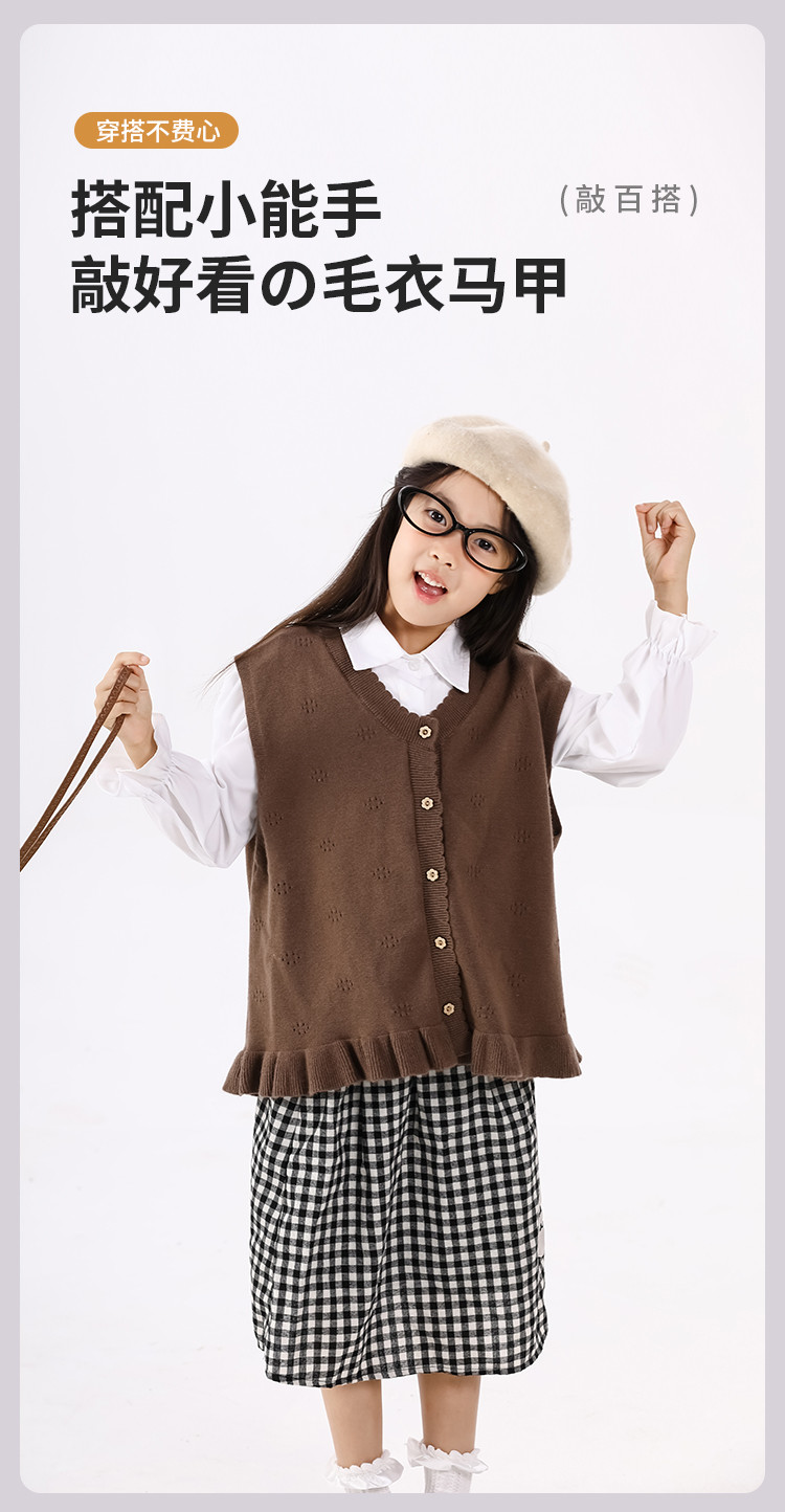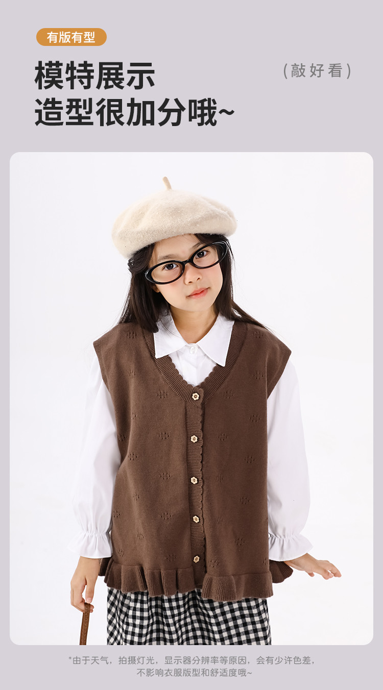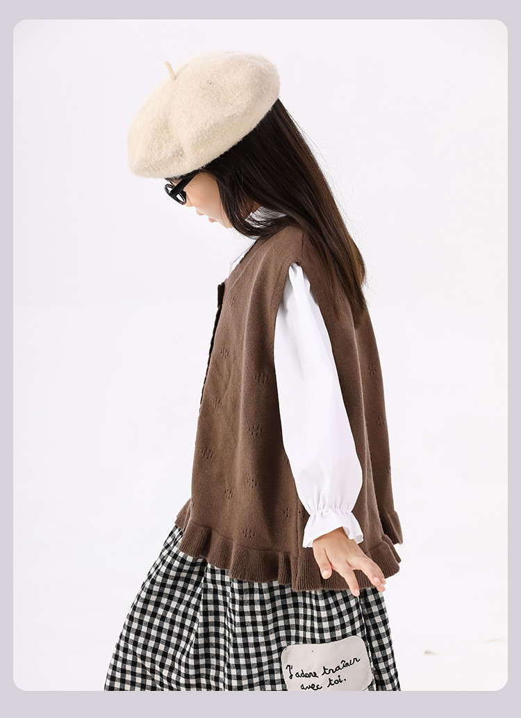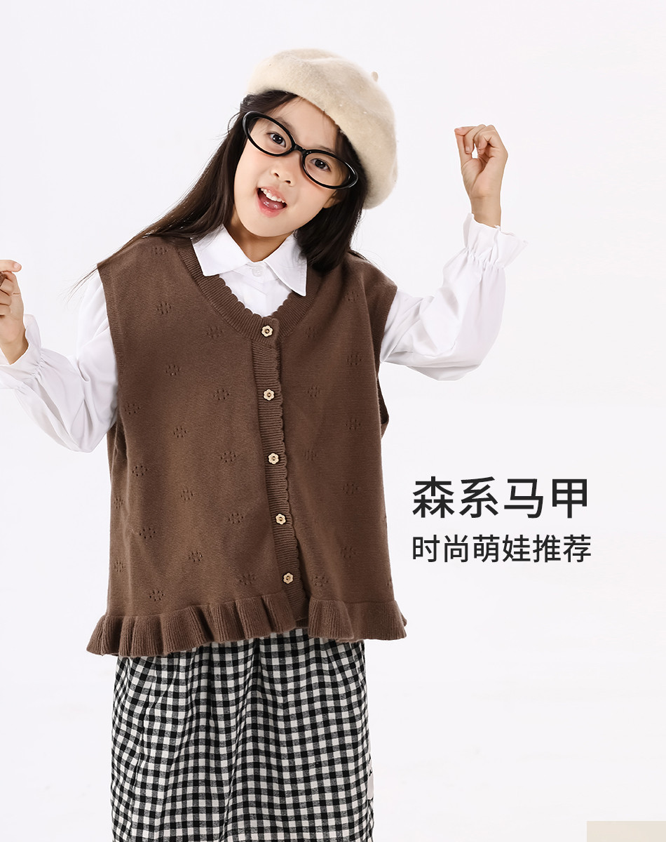 SHINING ELEPHANT 绚象儿童咖色木耳边针织马甲