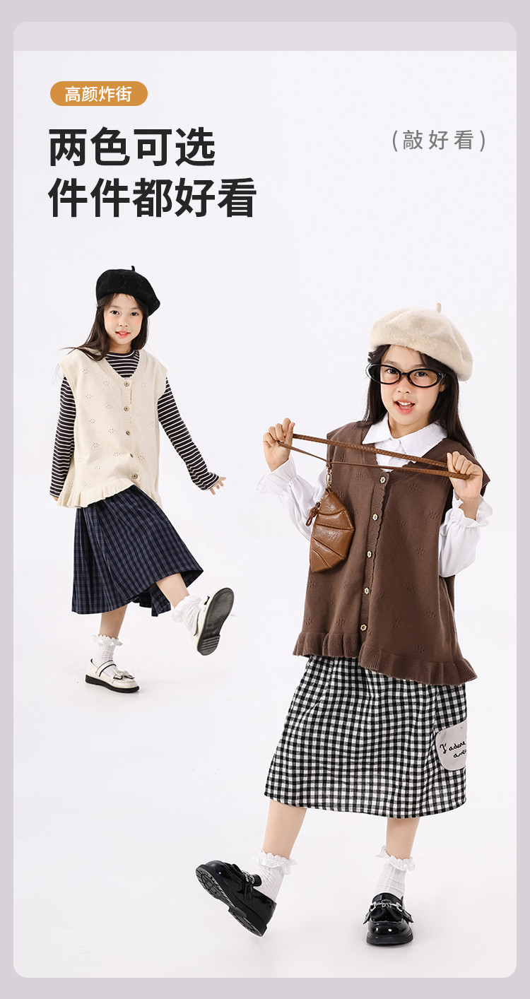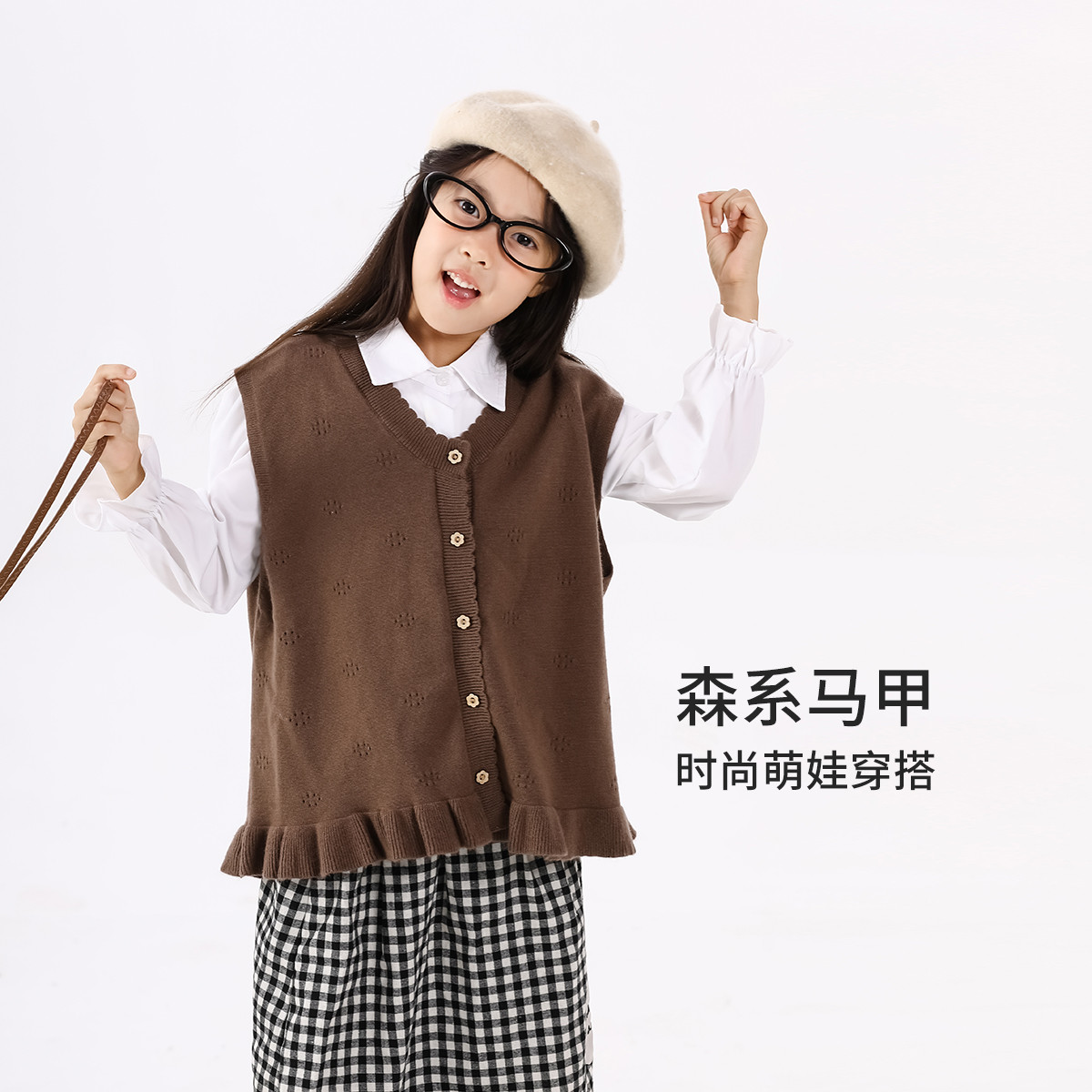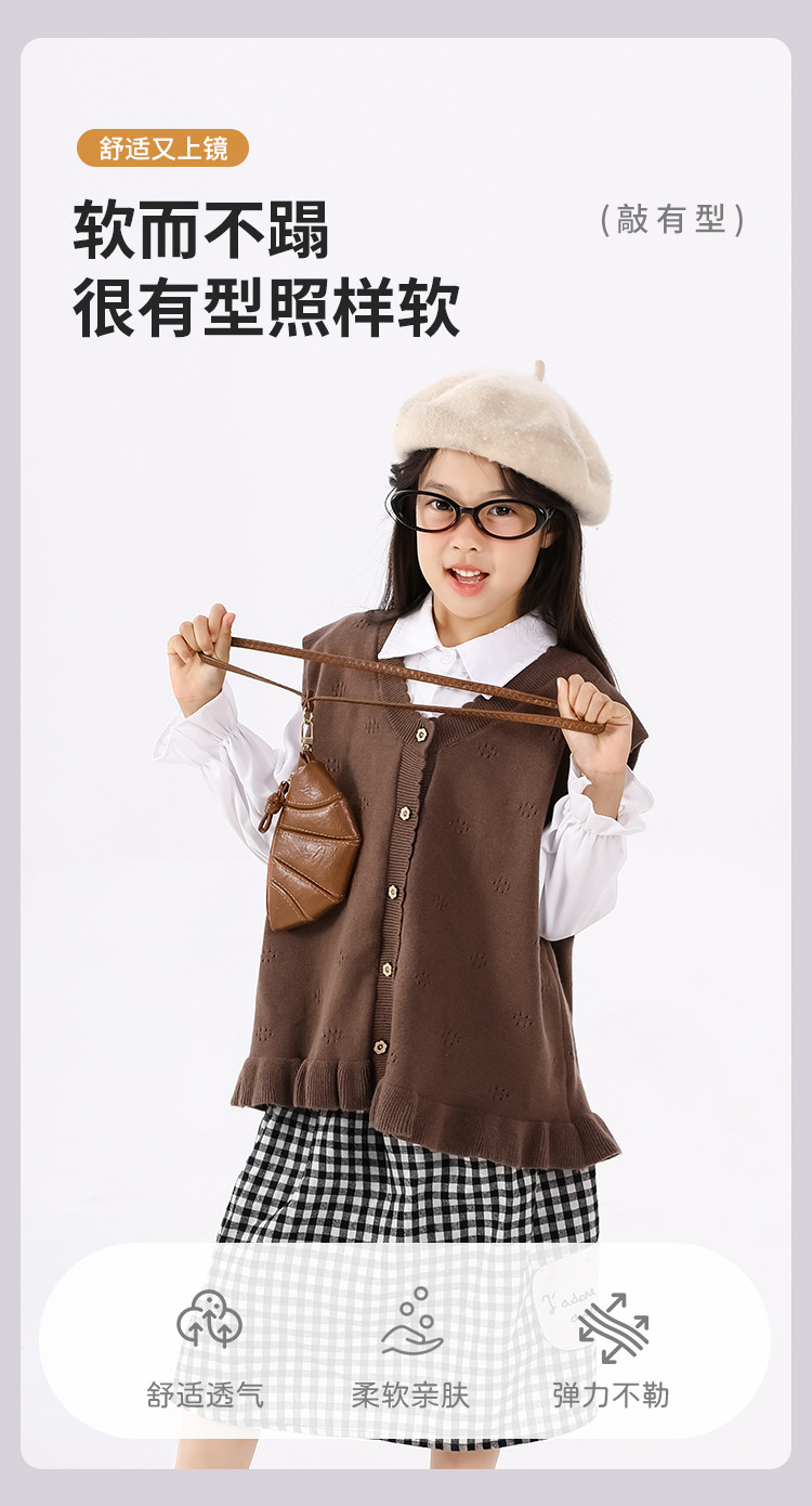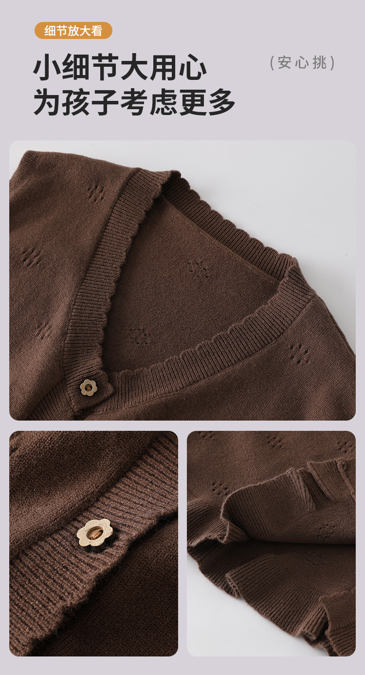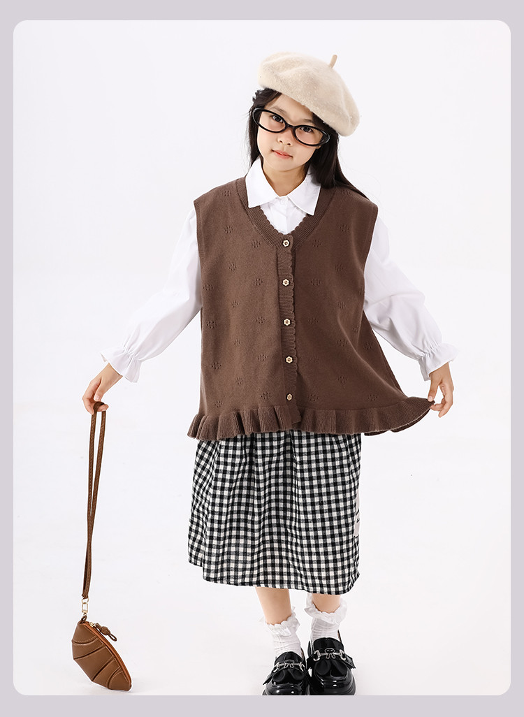 SHINING ELEPHANT 绚象儿童咖色木耳边针织马甲