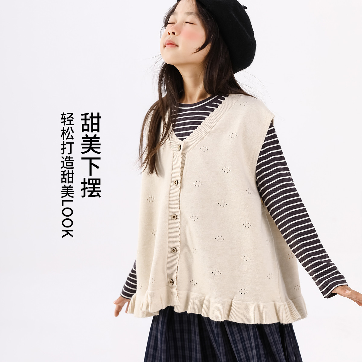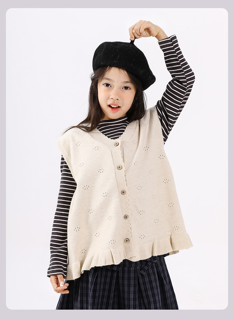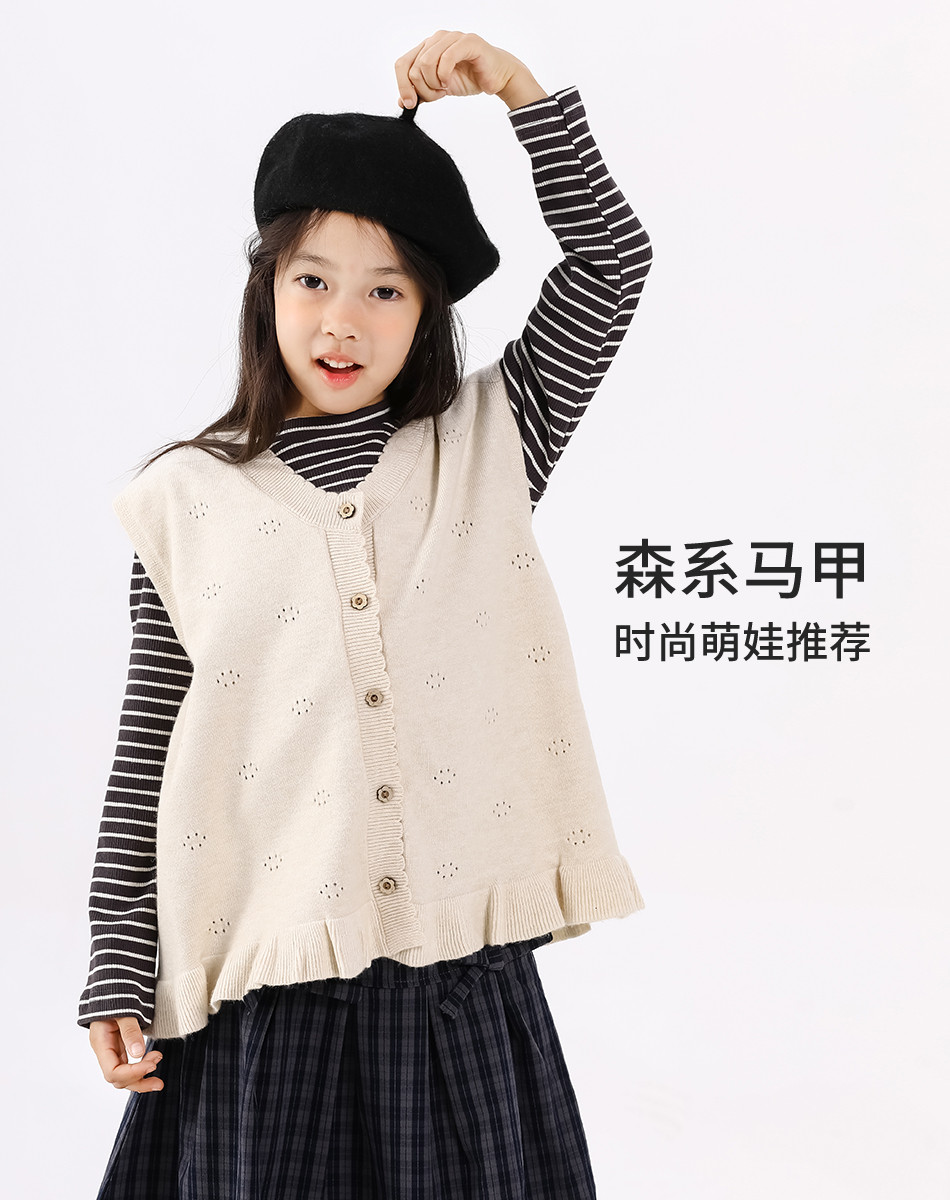 SHINING ELEPHANT 绚象儿童米色木耳边针织马甲