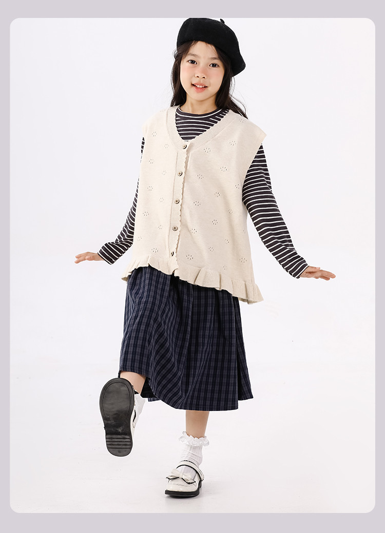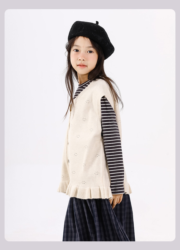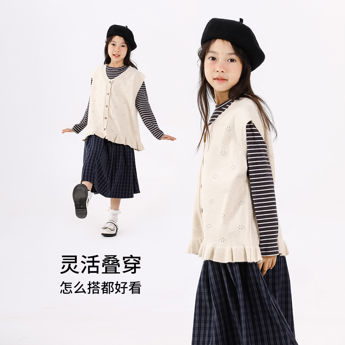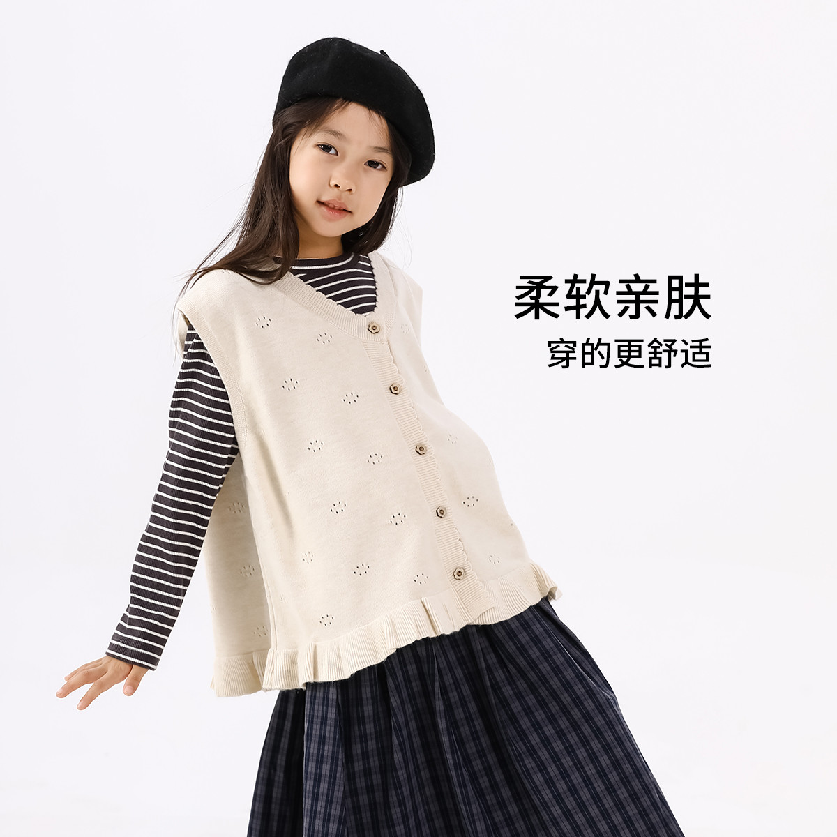 SHINING ELEPHANT 绚象儿童米色木耳边针织马甲