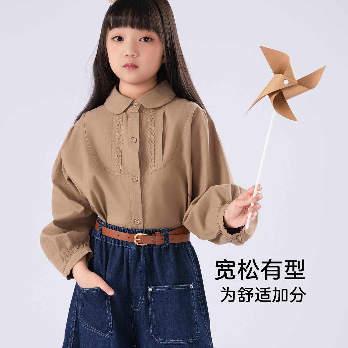 SHINING ELEPHANT 绚象儿童卡其色翻领衬衫