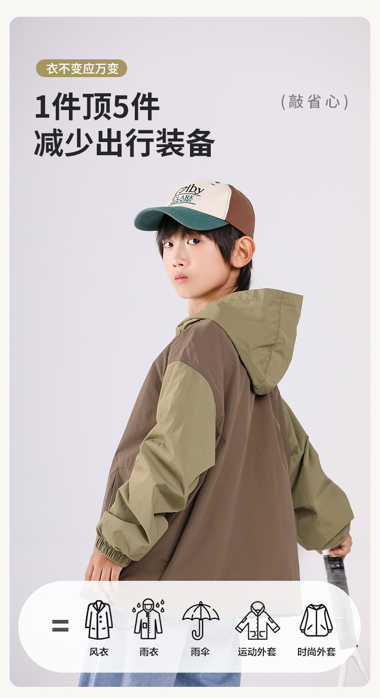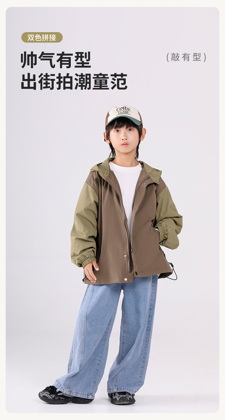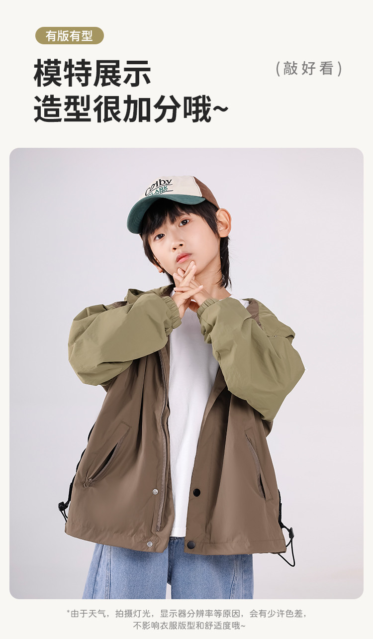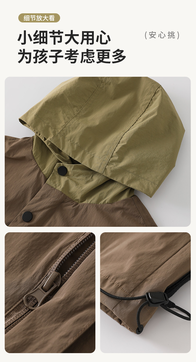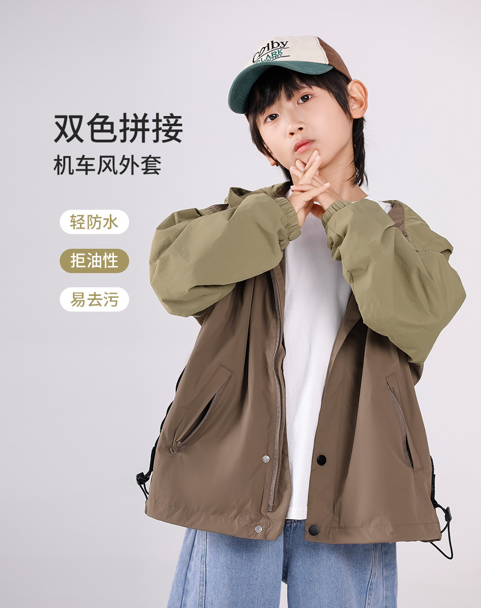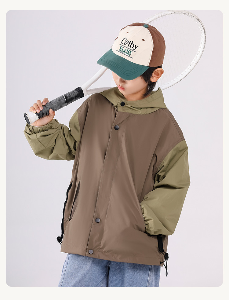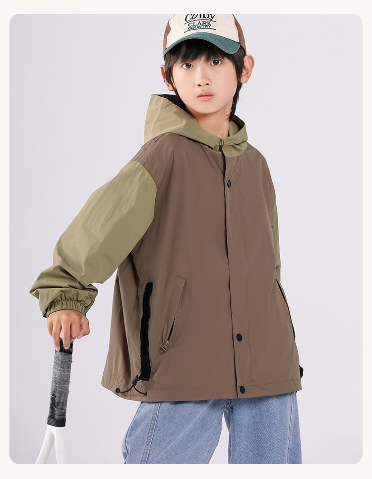 SHINING ELEPHANT 绚象儿童咖色插肩袖夹克防风外套