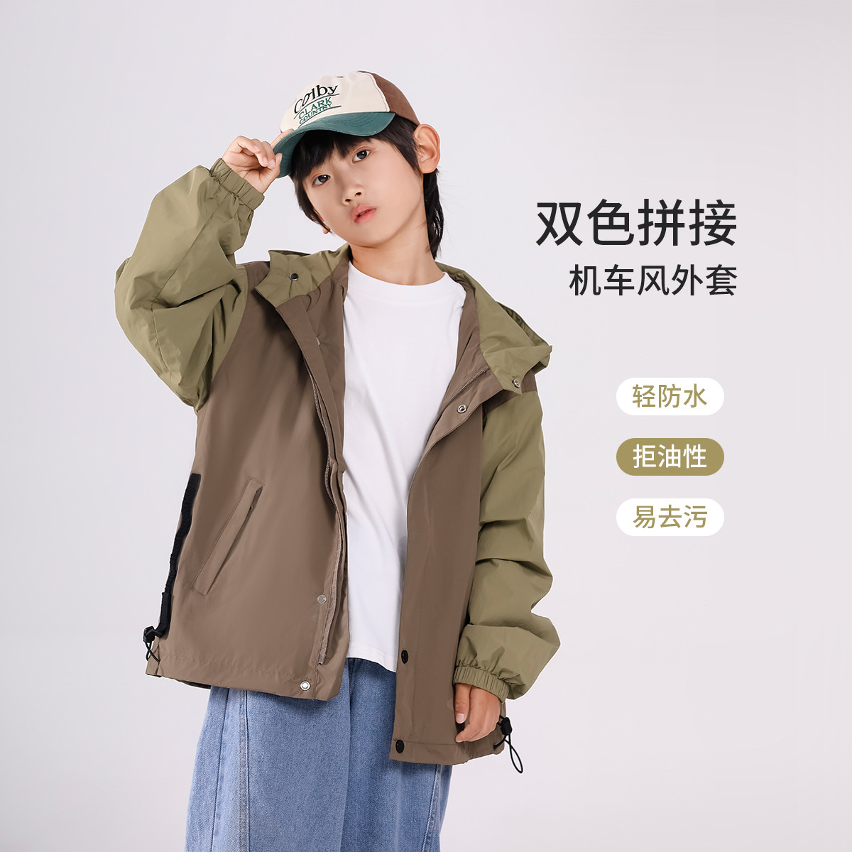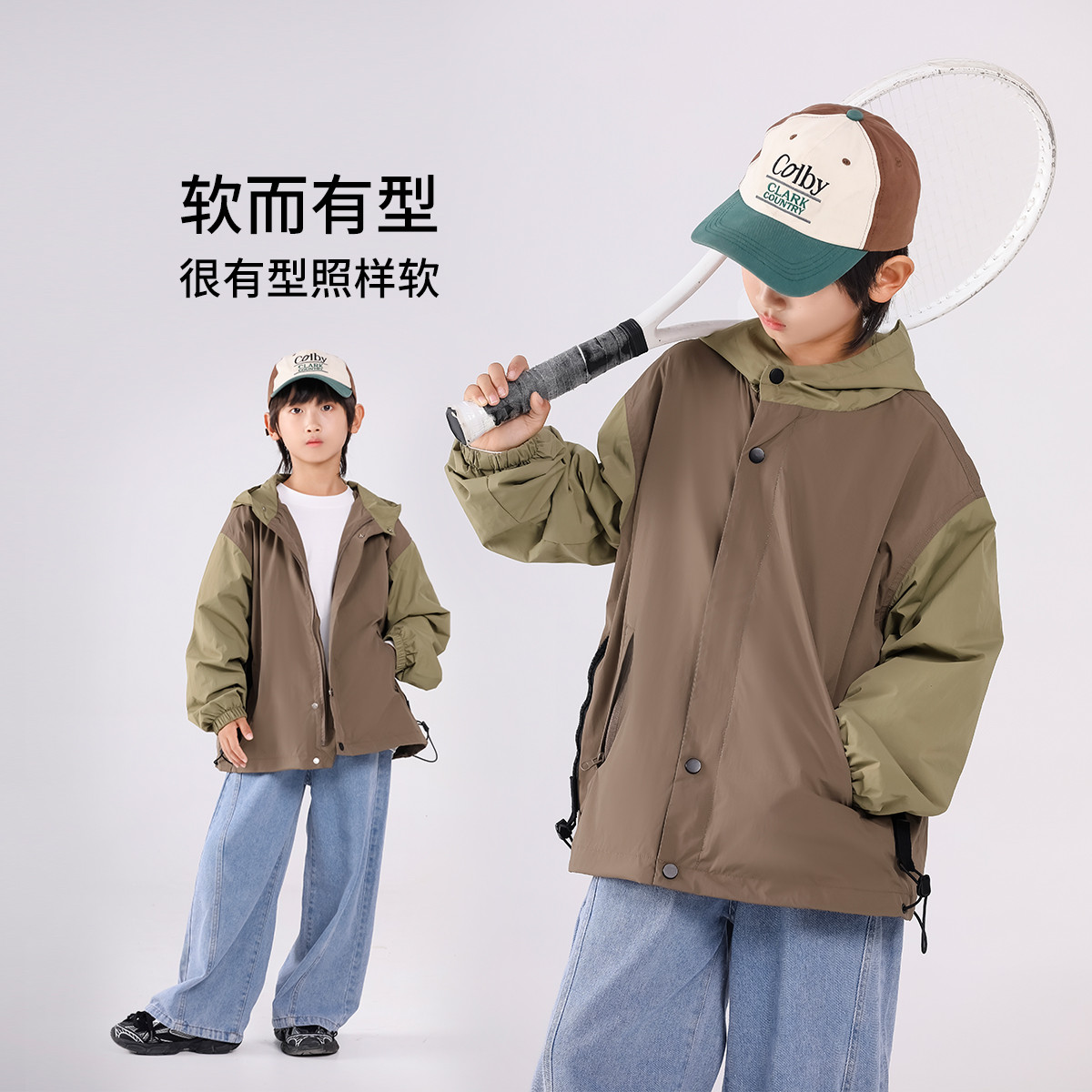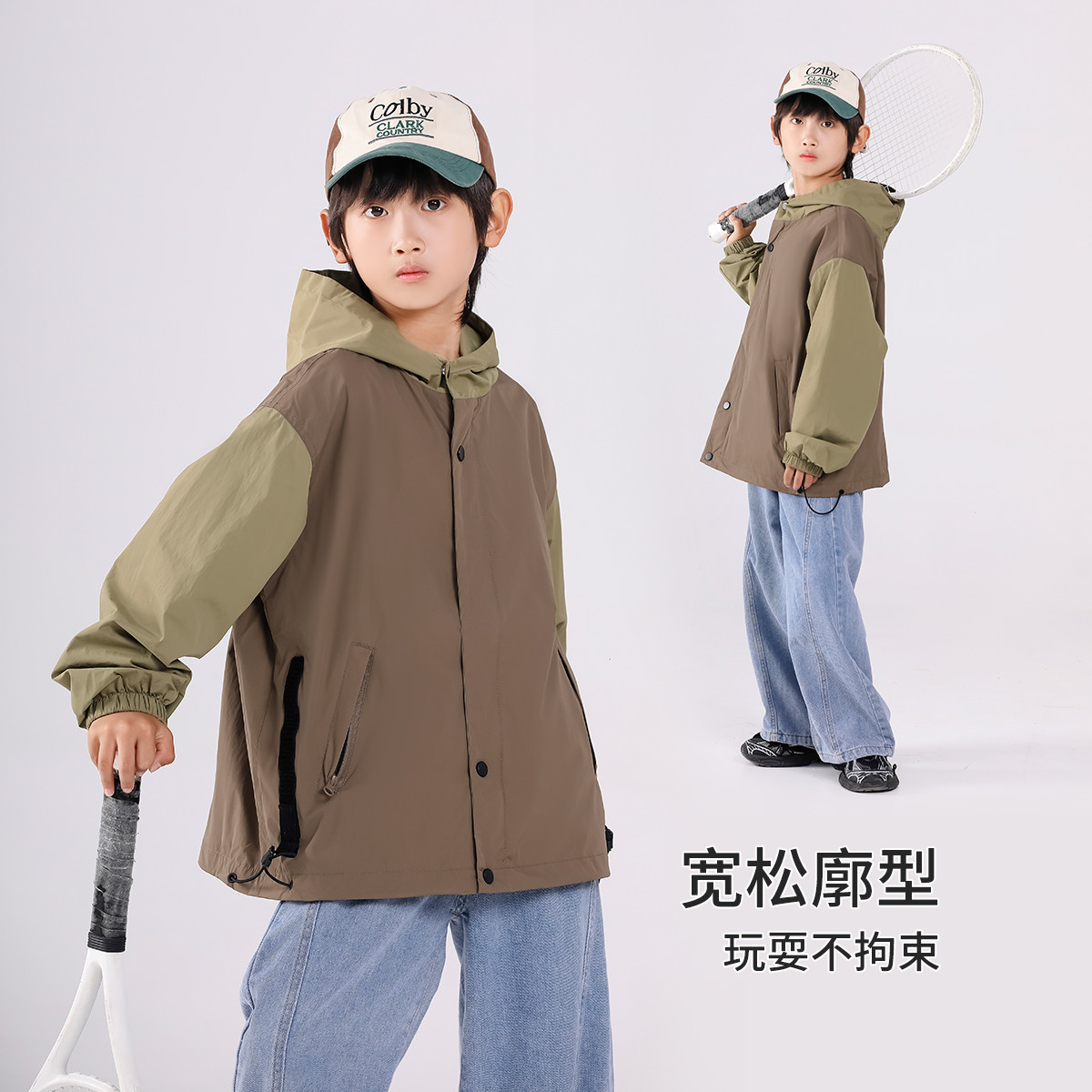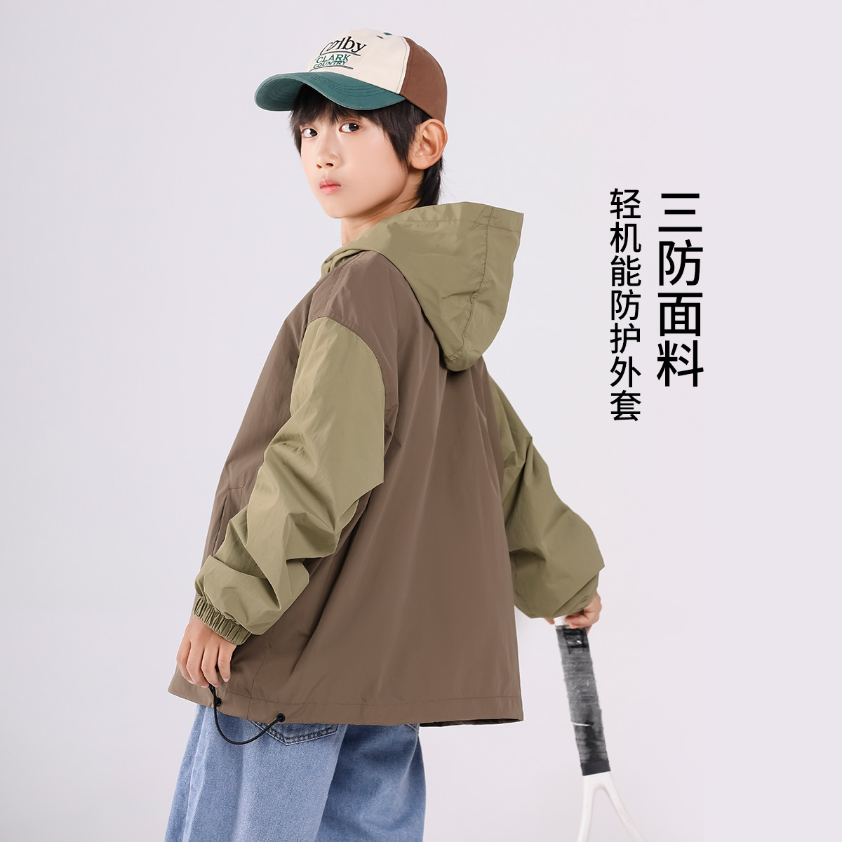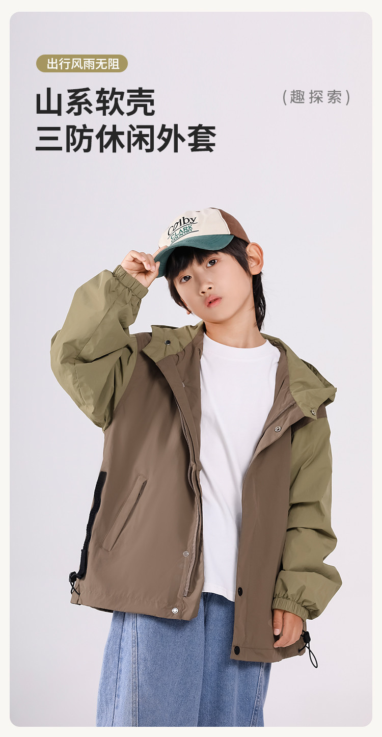 SHINING ELEPHANT 绚象儿童咖色插肩袖夹克防风外套