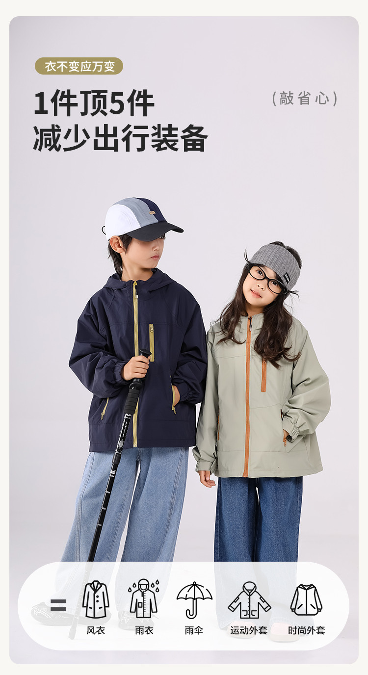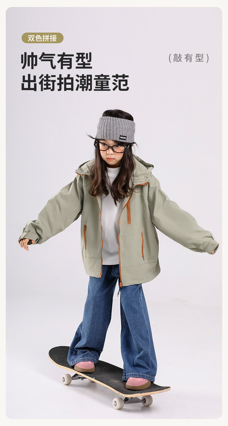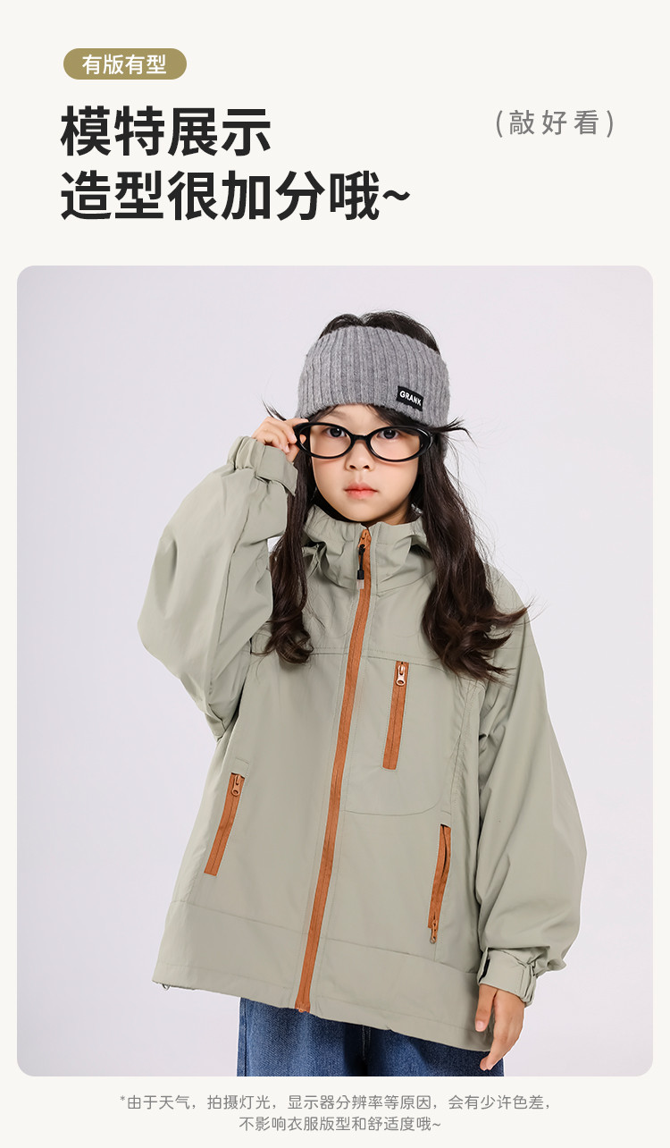 SHINING ELEPHANT 绚象儿童灰绿色夹克防风外套