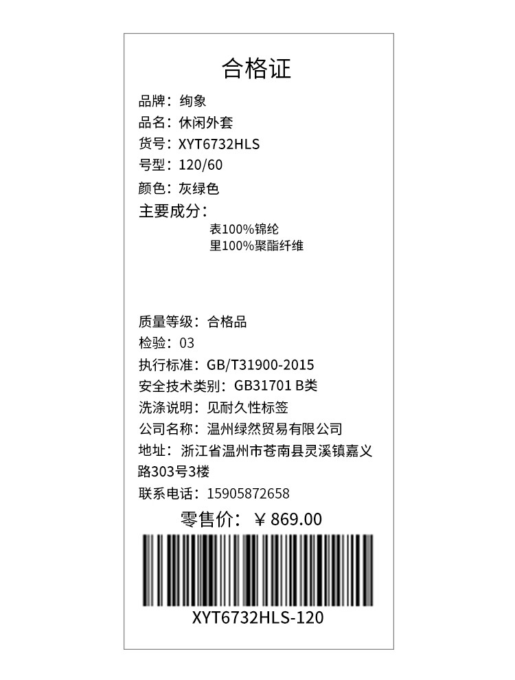 材质成分: 表100%锦纶 里100%聚酯纤维