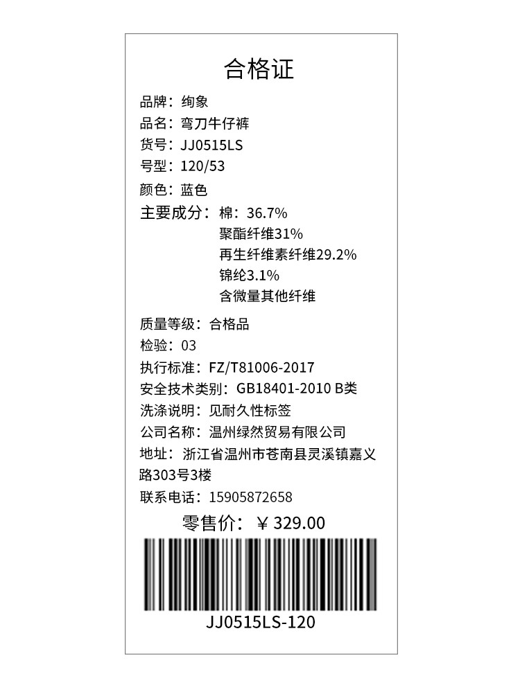 材质成分: | "棉:36.7% 聚酯纤维31% 再生纤维素纤维29.2% 锦纶3.1% 含微量其他纤维" |
