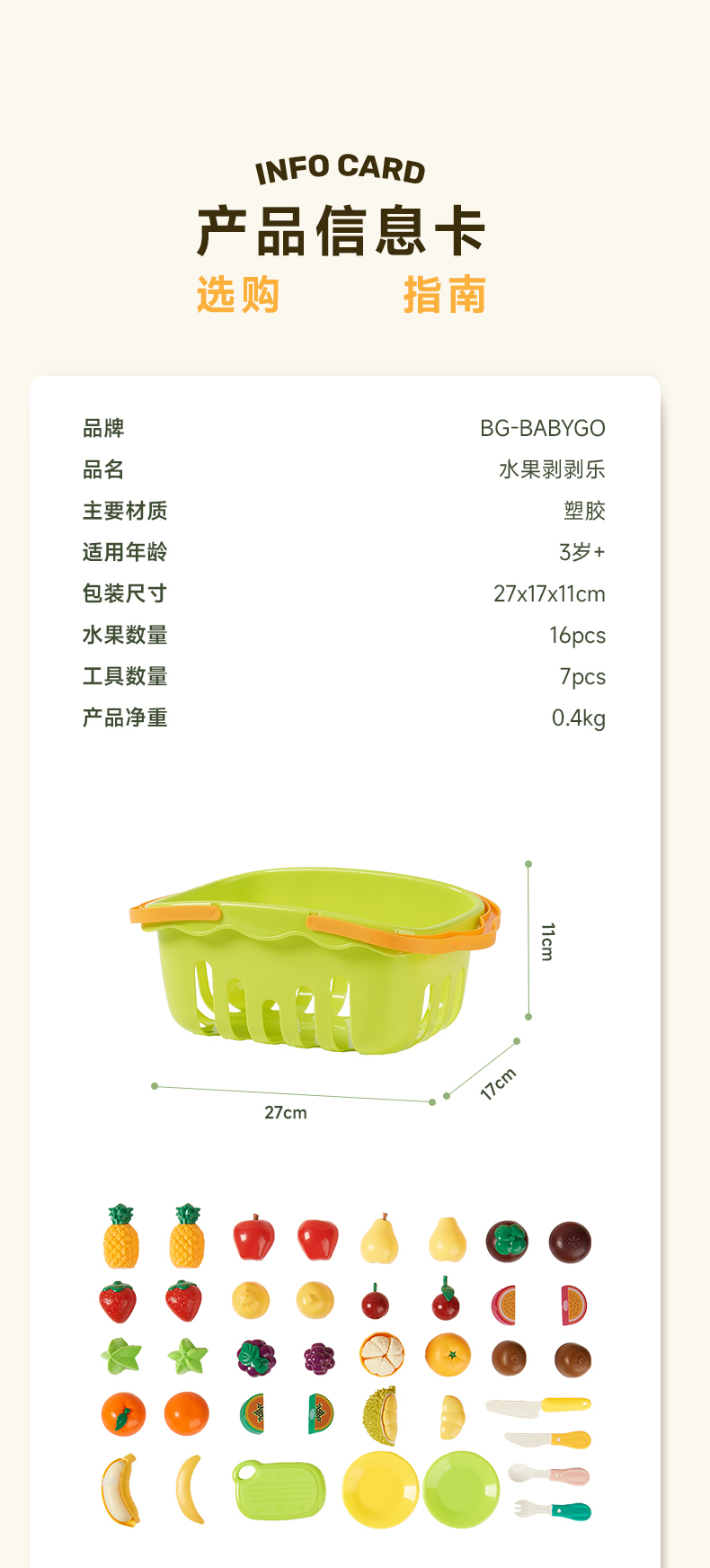 BabyGo 儿童水果切切乐23件大全套+毛毡板