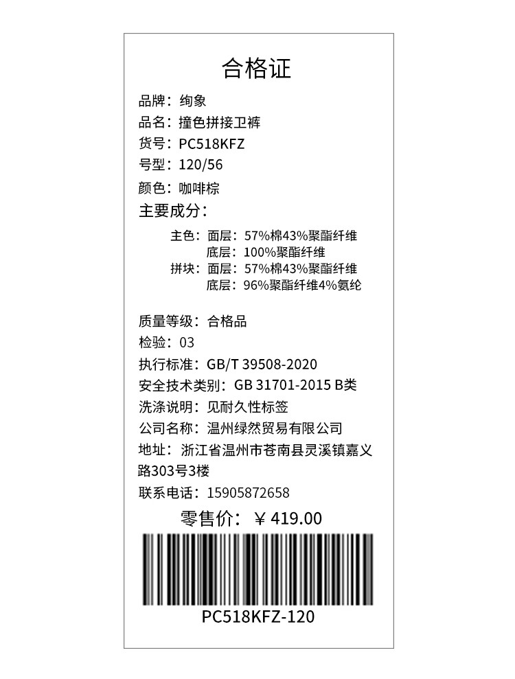 材质成分: | "主色:面层:57%棉43%聚酯纤维 底层:100%聚酯纤维 拼块:面层:57%棉43%聚酯纤维 底层:96%聚酯纤维4%氨纶 " |