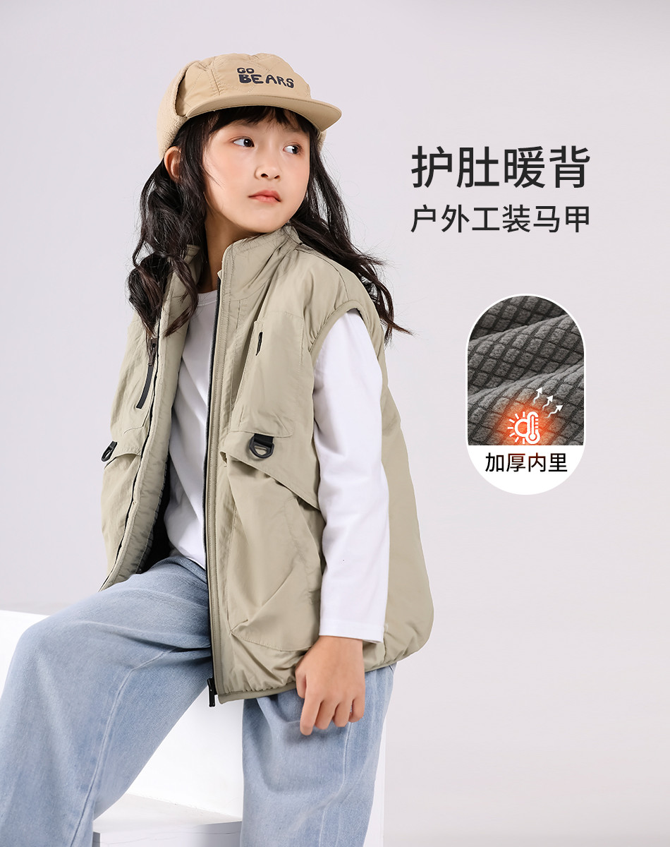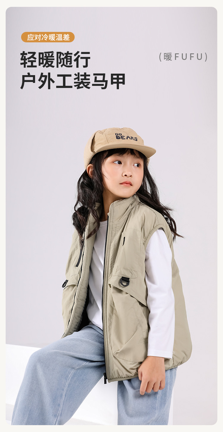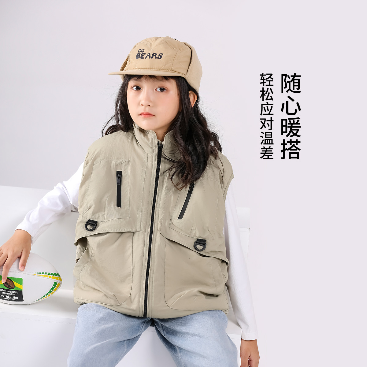 SHINING ELEPHANT 绚象儿童户外工装马甲 灰绿