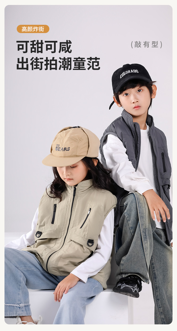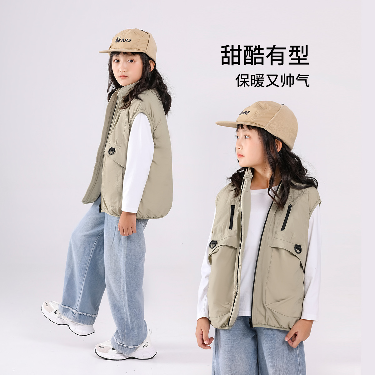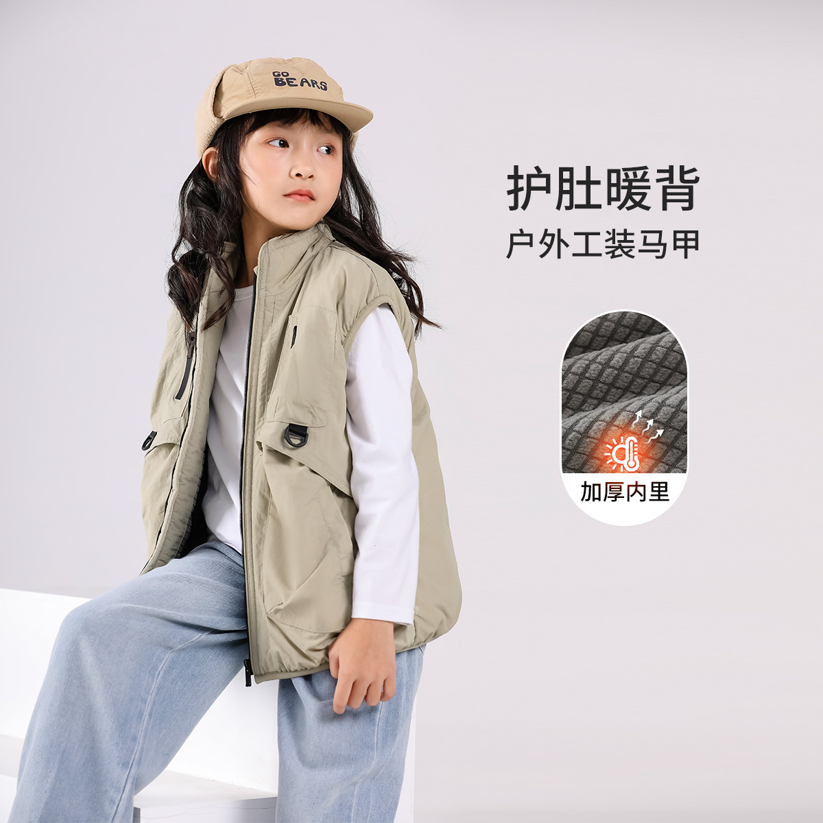 SHINING ELEPHANT 绚象儿童户外工装马甲 灰绿