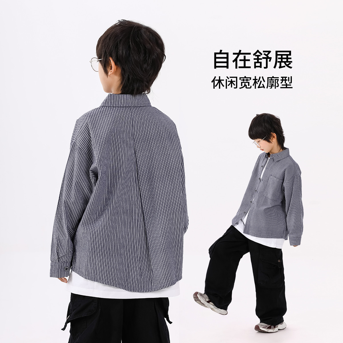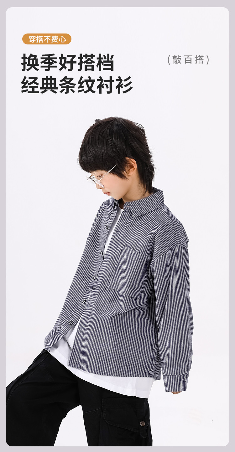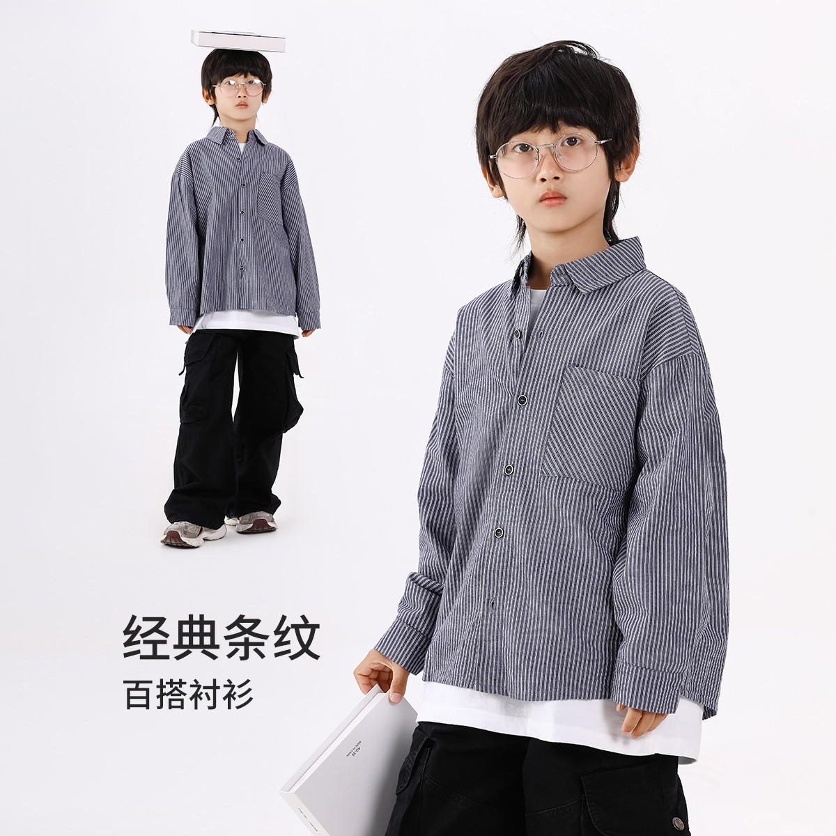SHINING ELEPHANT 绚象儿童经典条纹百搭衬衫 蓝色