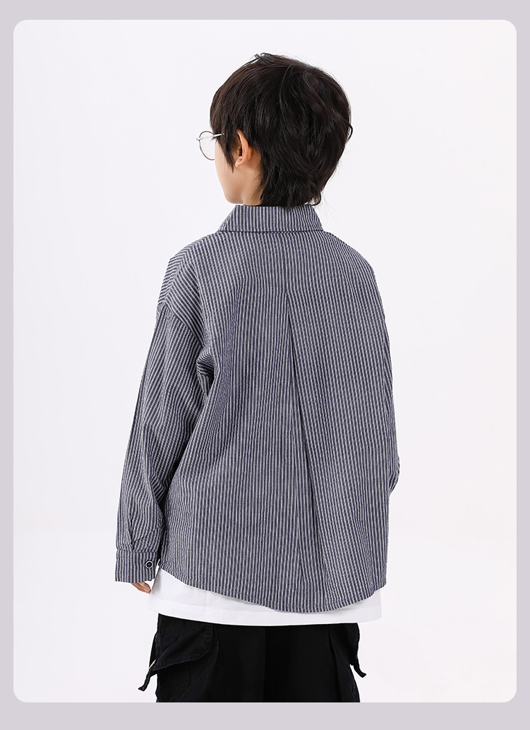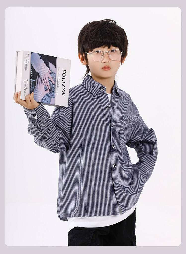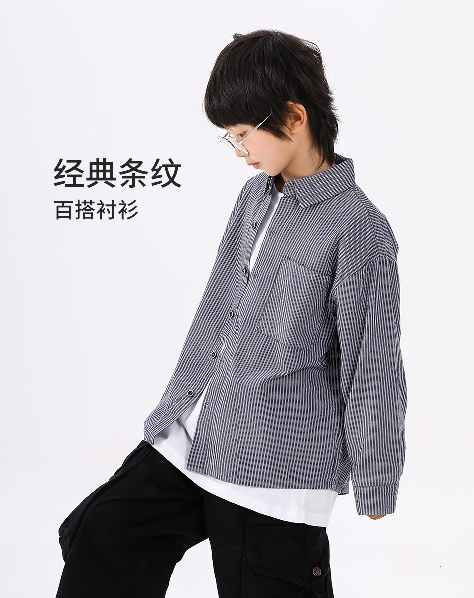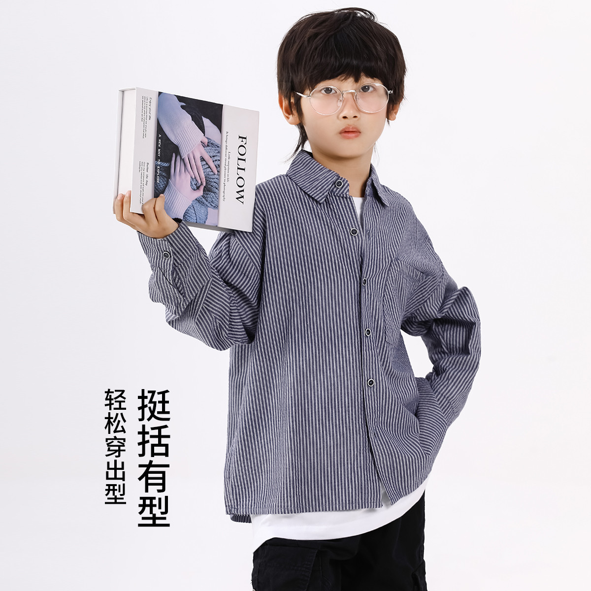 SHINING ELEPHANT 绚象儿童经典条纹百搭衬衫 蓝色