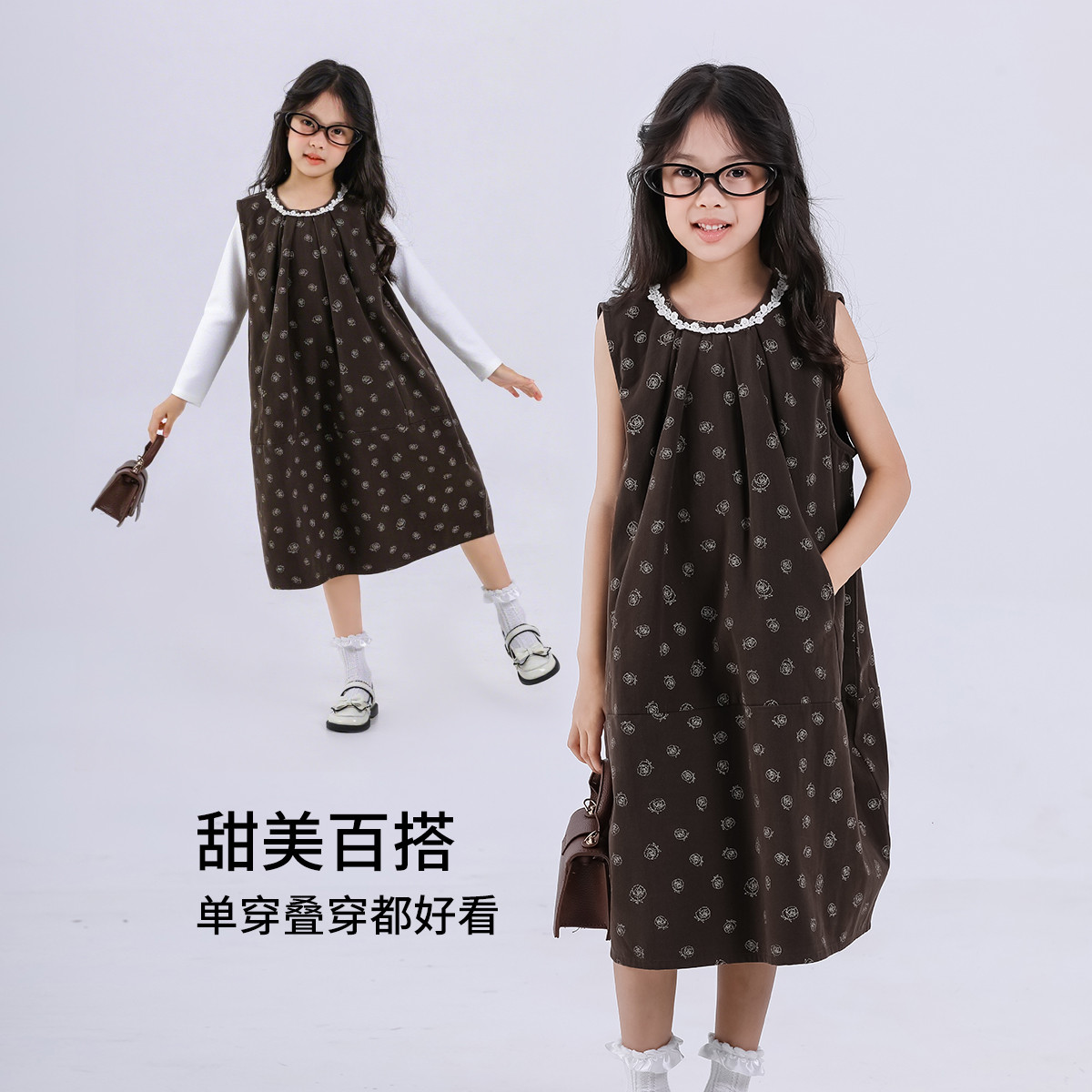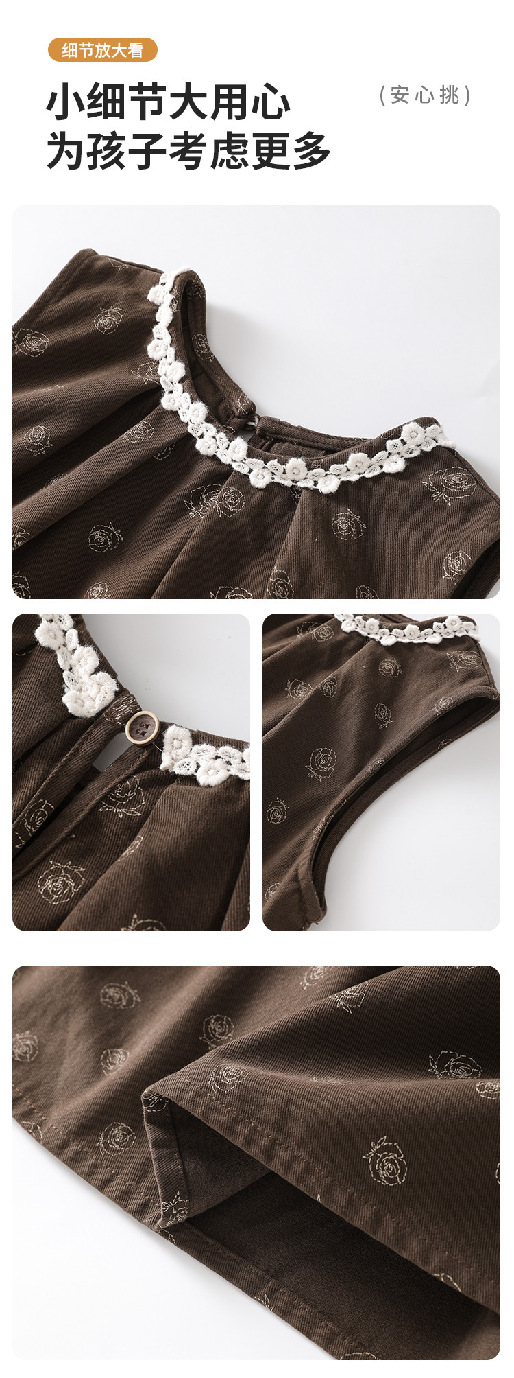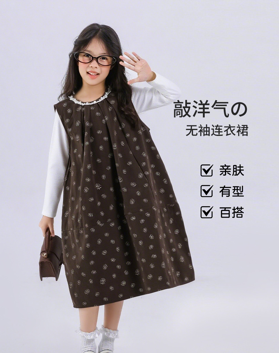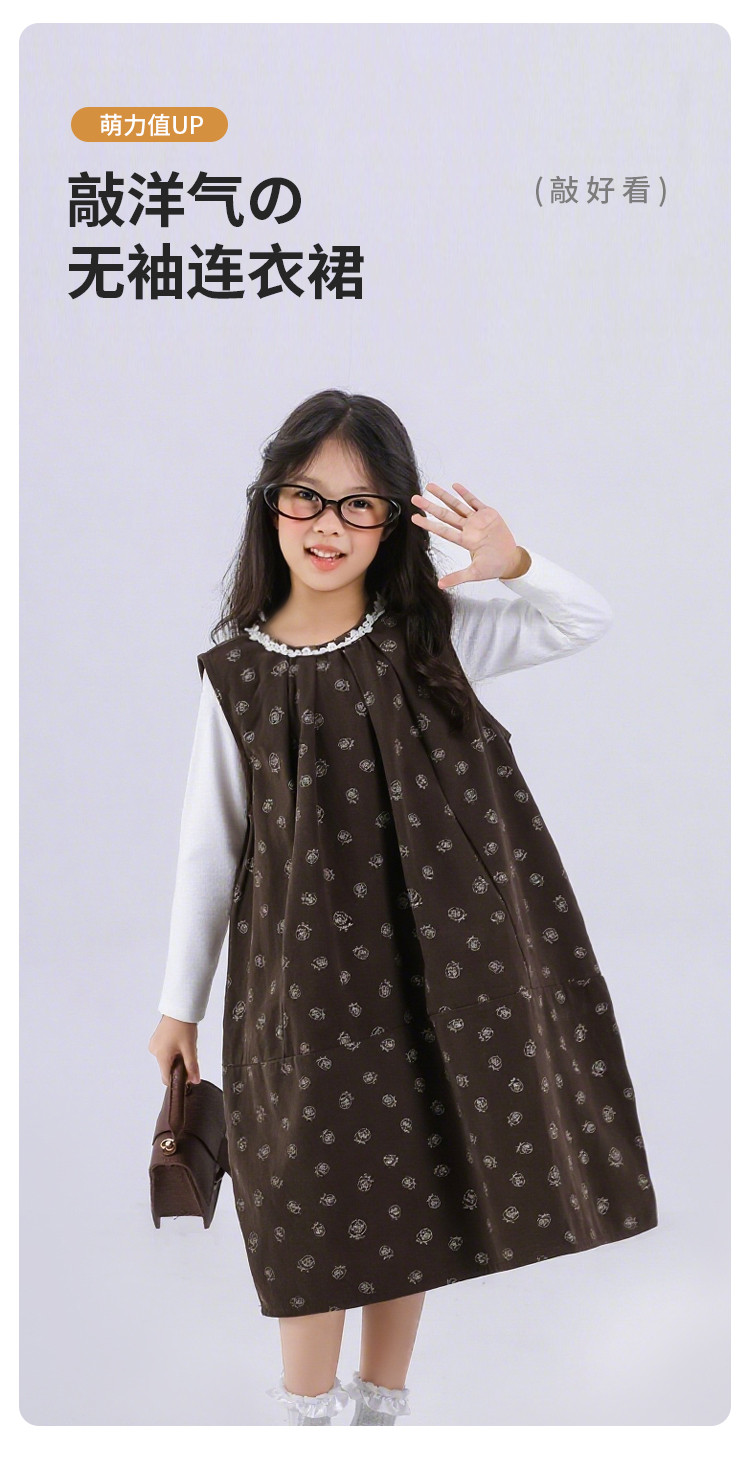 SHINING ELEPHANT 绚象儿童无袖连衣裙 咖色