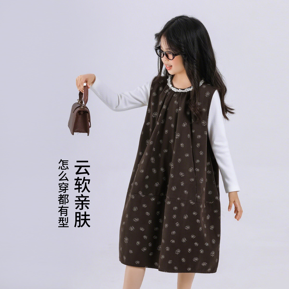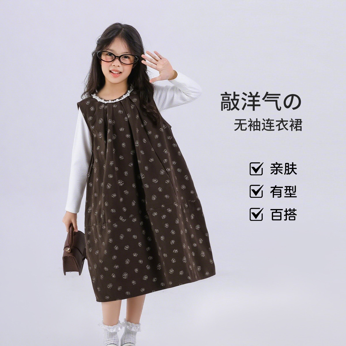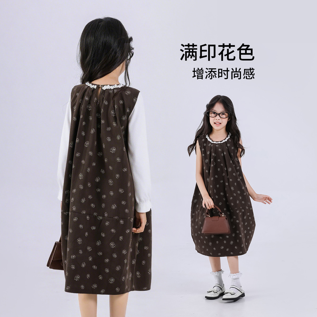 SHINING ELEPHANT 绚象儿童无袖连衣裙 咖色