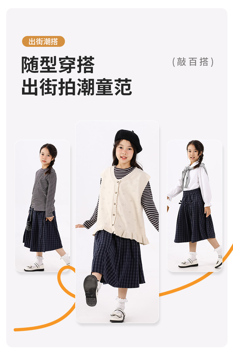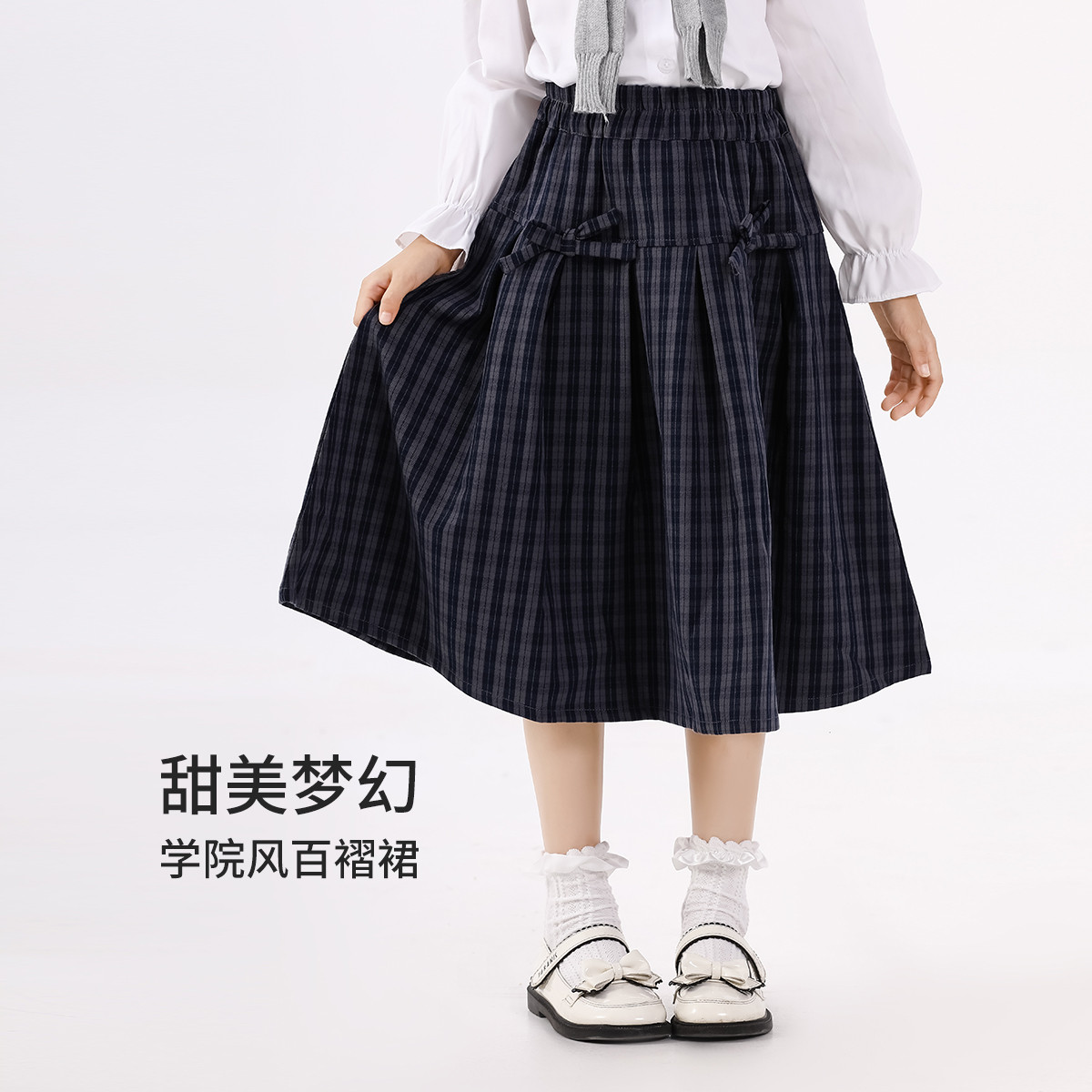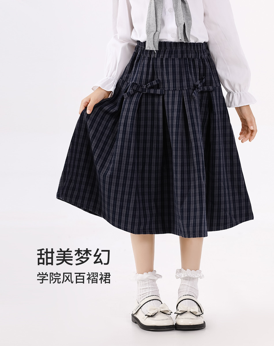 SHINING ELEPHANT 绚象儿童甜美梦幻学院风百褶裙 蓝色