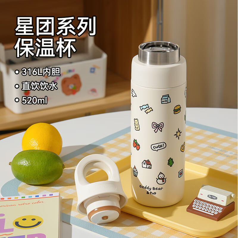 BEDDYBEAR 杯具熊儿童星团系列可爱涂鸦图案保温杯 520ml