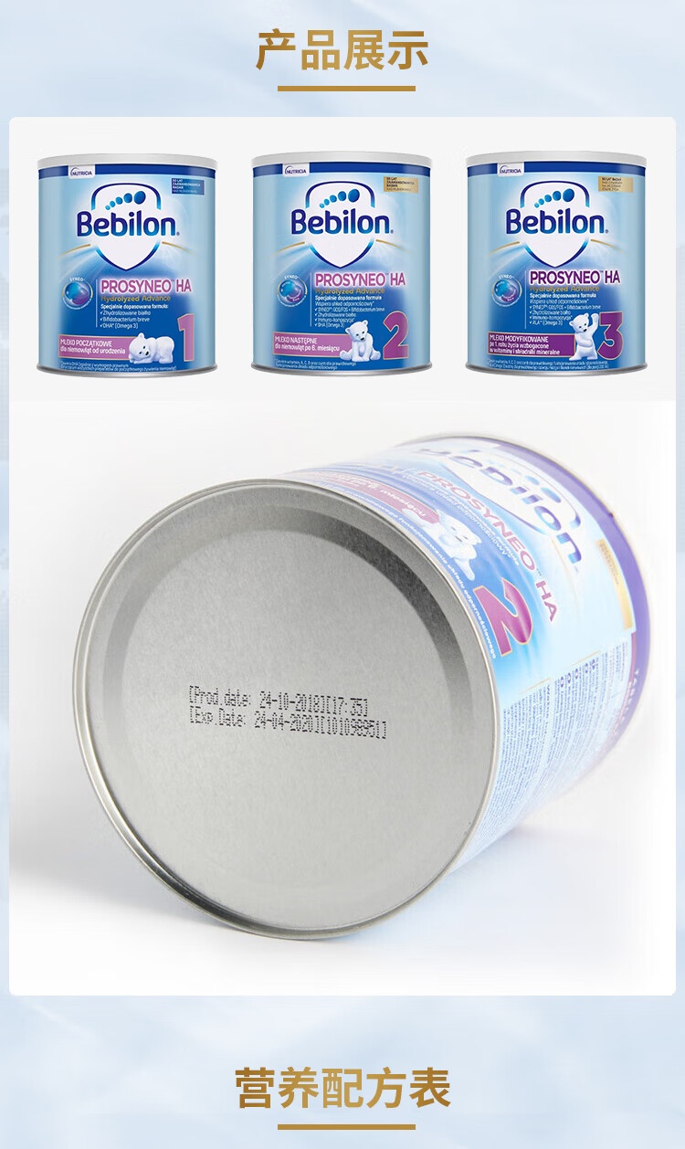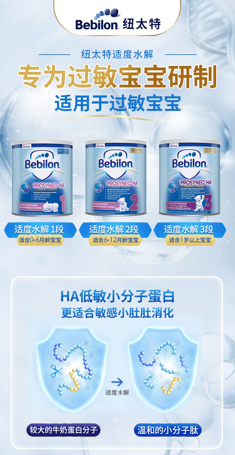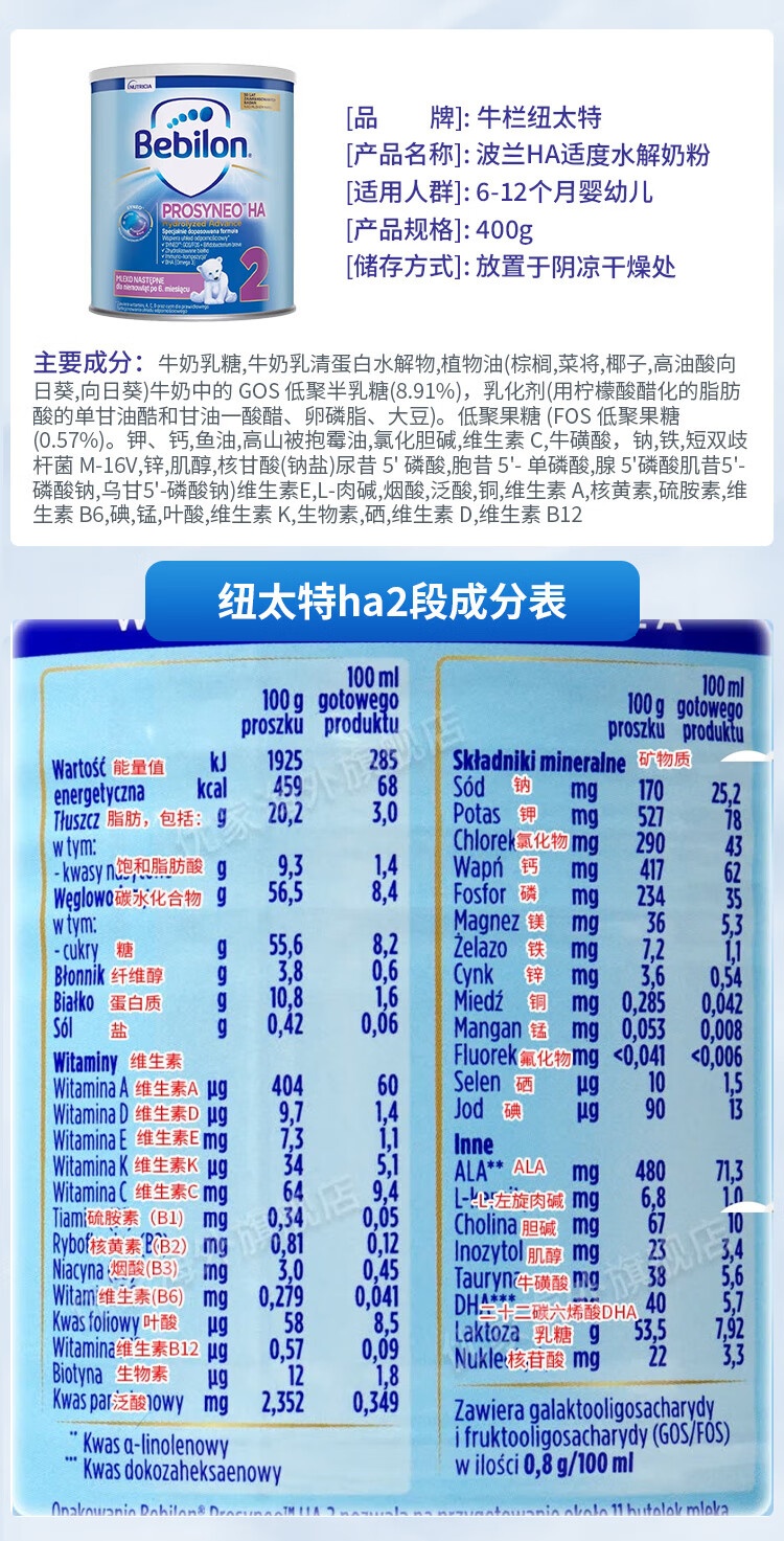 Bebilon 波兰牛栏纽太特适度水解配方婴幼儿奶粉 2段 6-12个月 400g 波兰本土原版