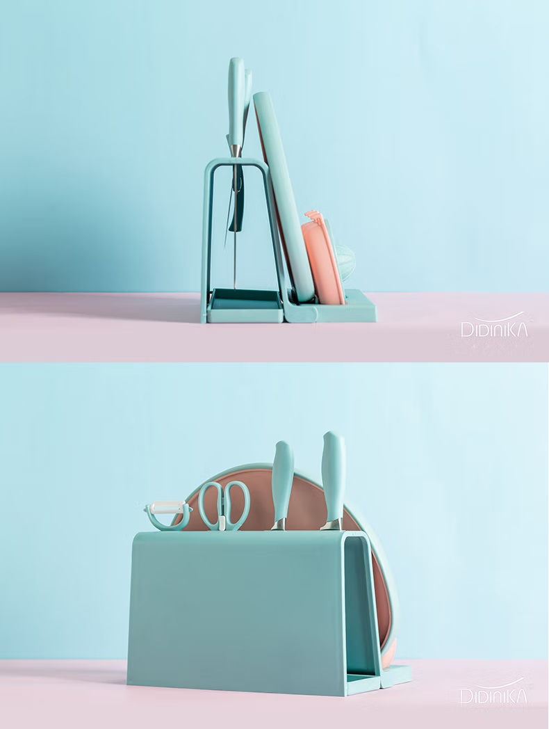 | 规格: | 菜板、菜刀、收纳底座、水果刀、削皮刀、剪刀、打汁配件、研磨配件 |